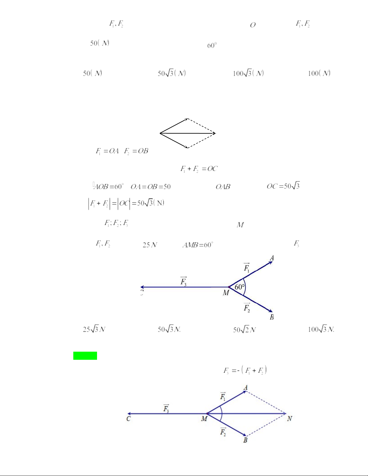 Câu 17: Cho hai lực cùng tác động vào một vật đứng tại điểm