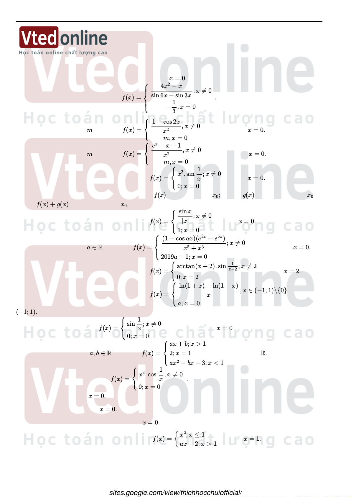 THI ONLINE - HÀM SỐ LIÊN TỤC