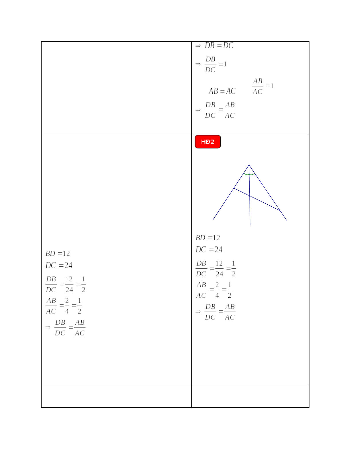 - Vận dụng tính chất đường phân giác trong tam giác vào giải bài tập