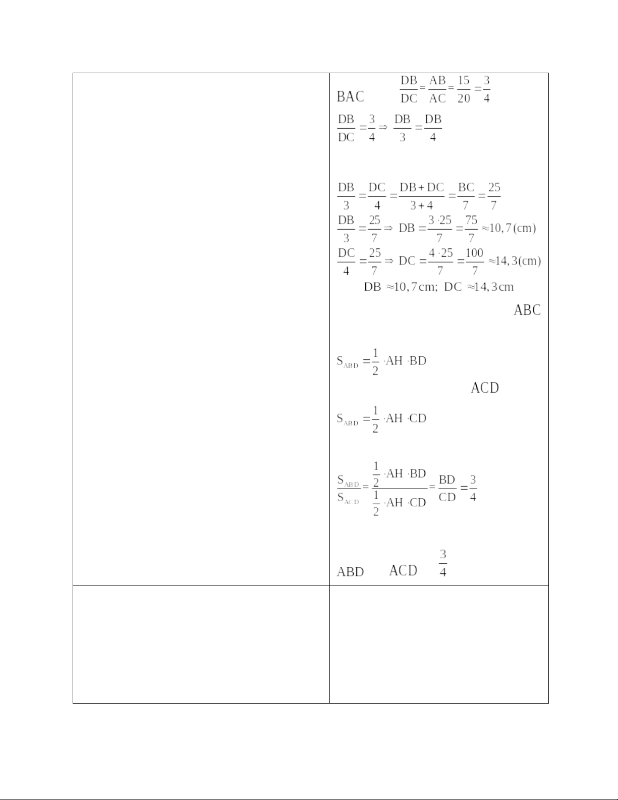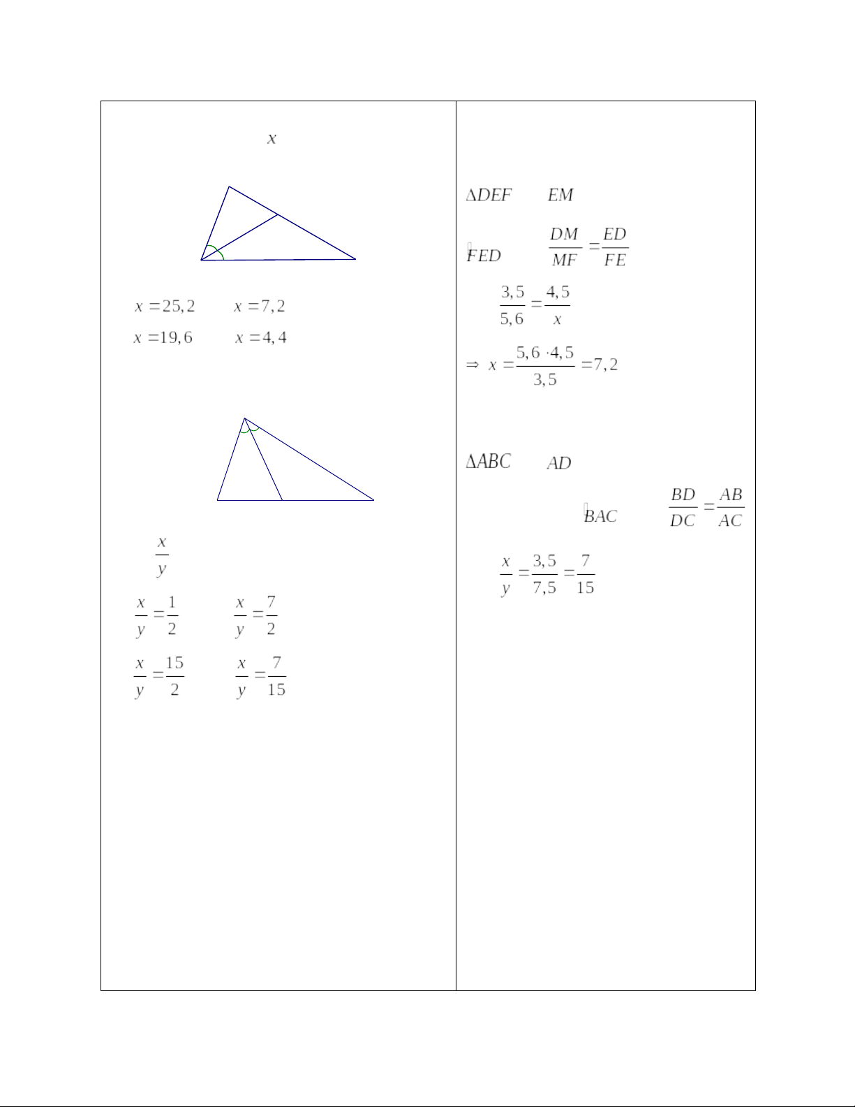 tượng đã cho và nội dung bài học về tính chất đường phân giác trong tam giác từ đó có thể áp dụng kiến thức đã học để giải quyết các bài toán tính độ dài đoạn thẳng và tỉ số của hai đoạn thẳng.