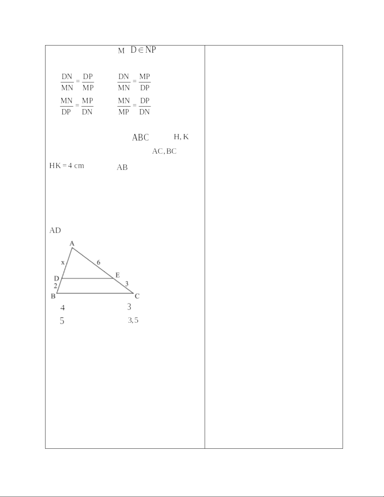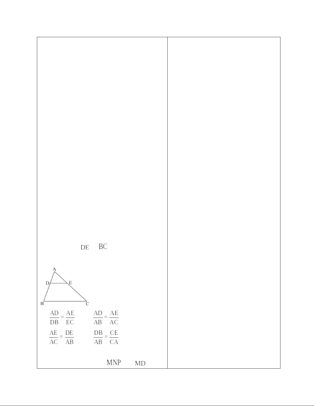 2. Học sinh: SGK, thước thẳng, bảng nhóm, ôn tập lại kiến thức về định lí Thalès trong tam giác, đường trung bình trong tam giác, tính chất đường phân giác trong tam giác.