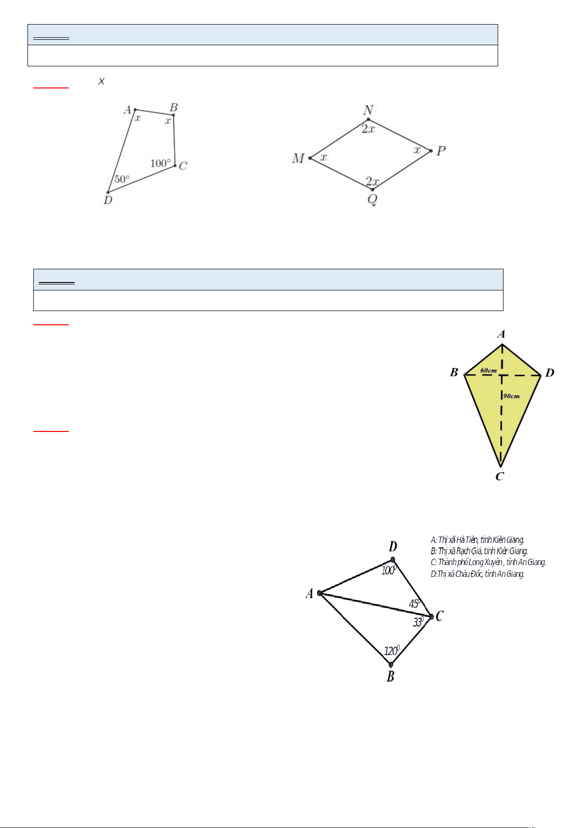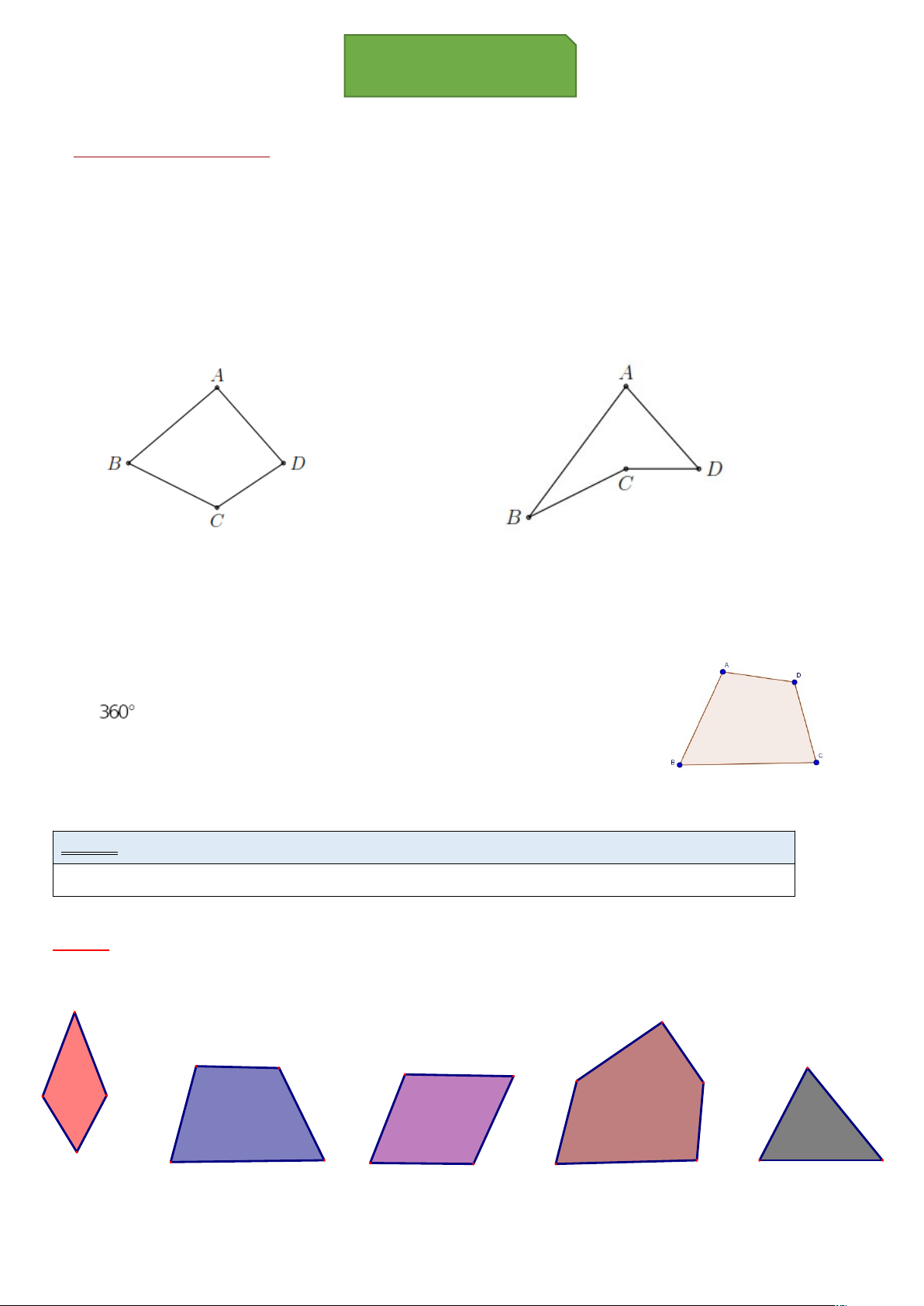 Ví dụ 1. Quan sát các hình vẽ bên dưới và cho biết hình nào là tứ giác lồi. Đọc tên các cạnh, các đỉnh, các góc của tứ giác lồi đó.