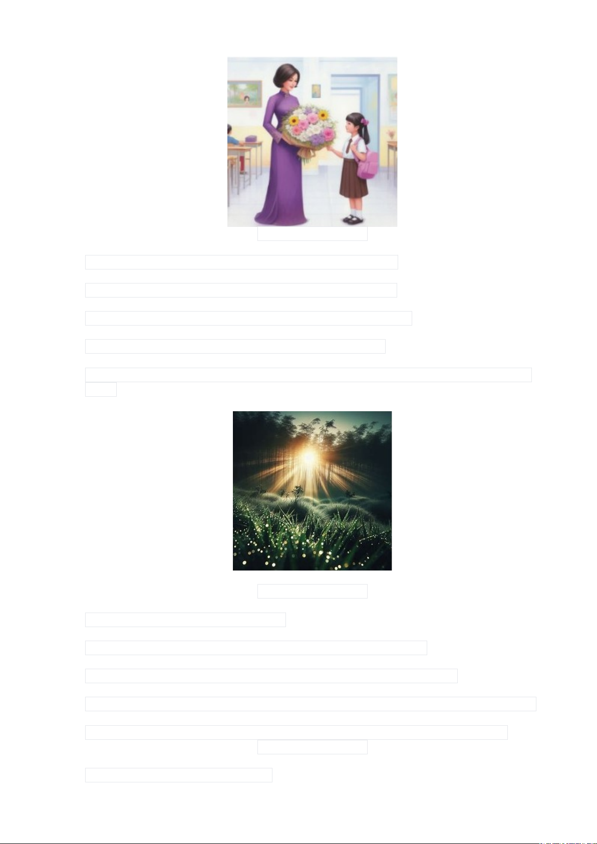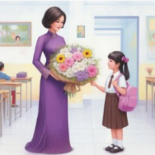 D.Bạn Linh Nhi cảm ơn và tặng thầy giáo một bó hoa tươi thắm.
