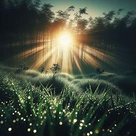 Những hạt sương long lanh như hạt ngọc đang đùa vui cùng nắng sớm.