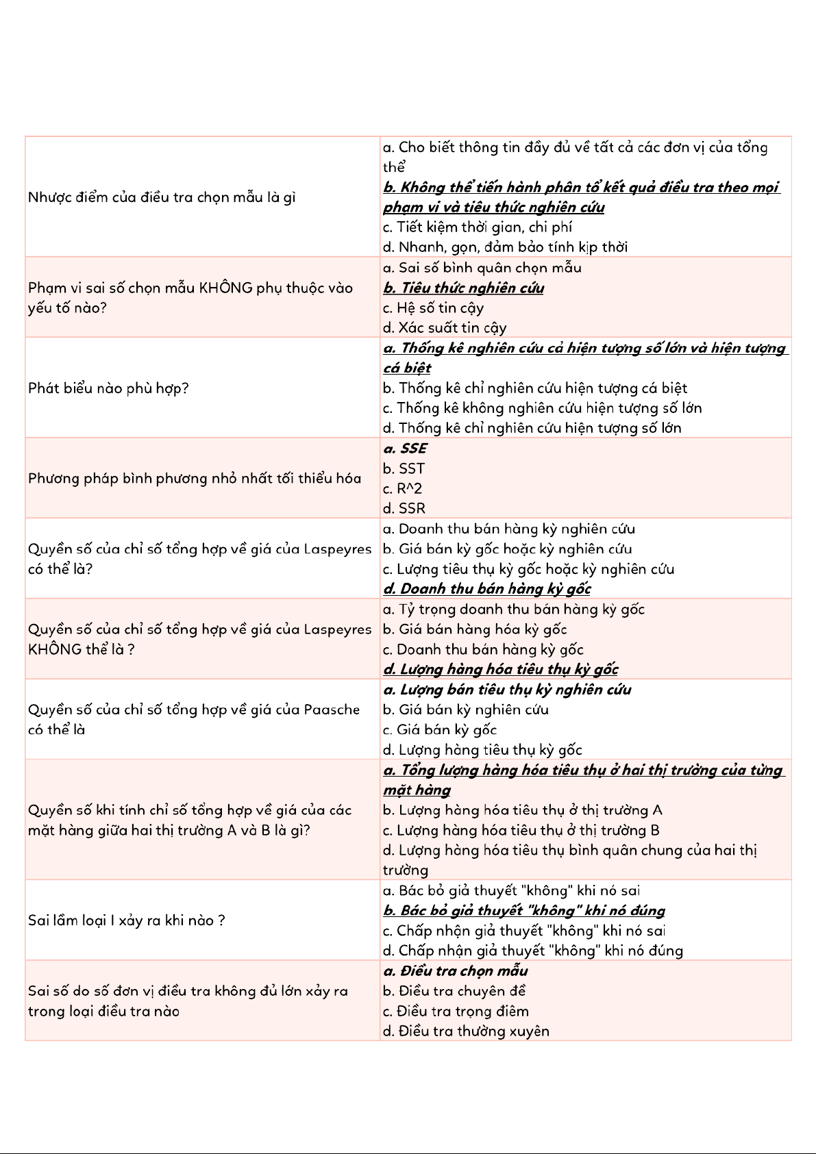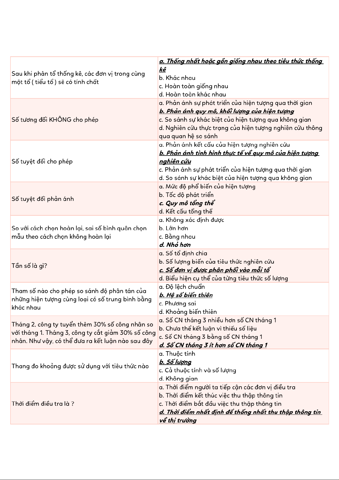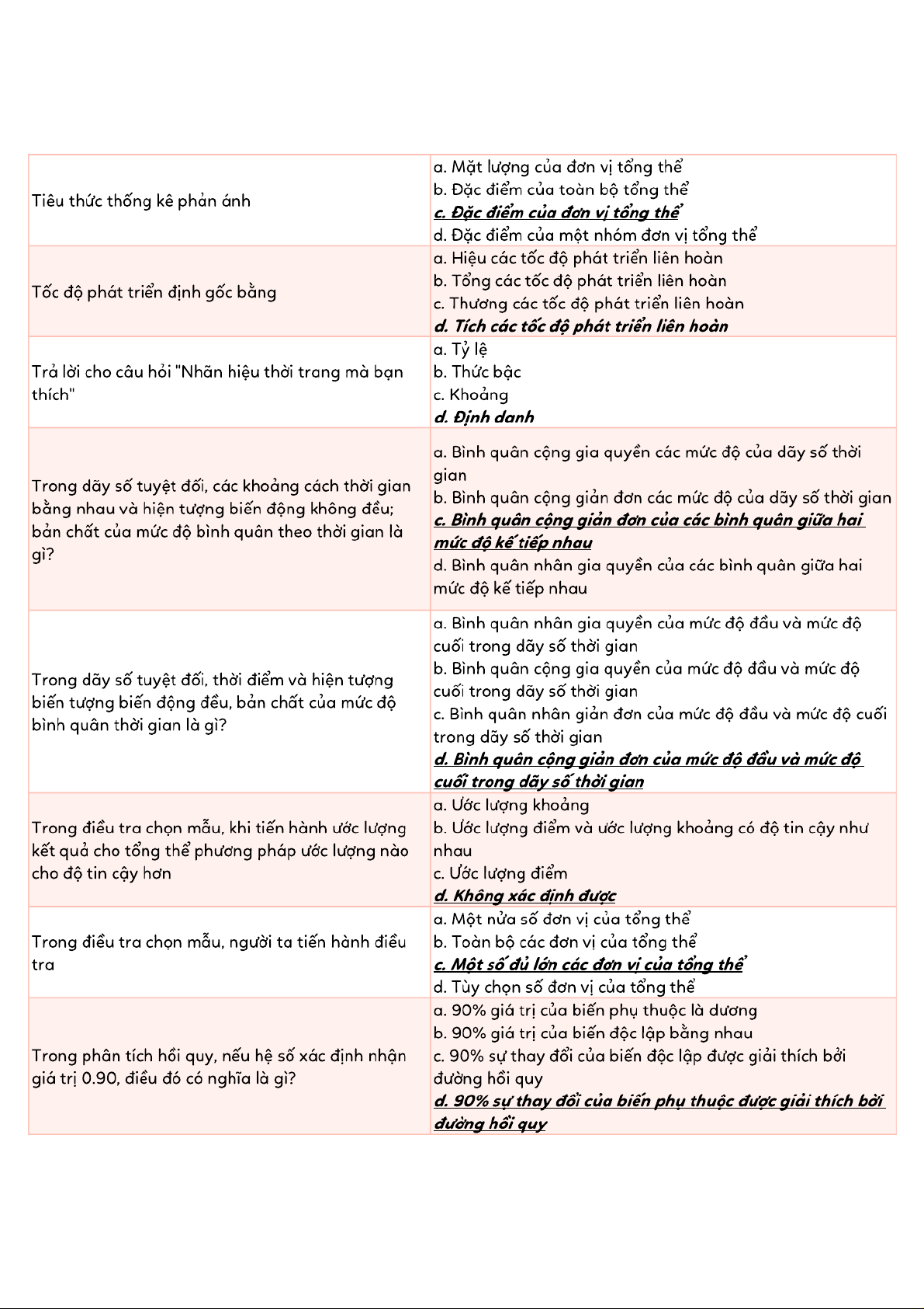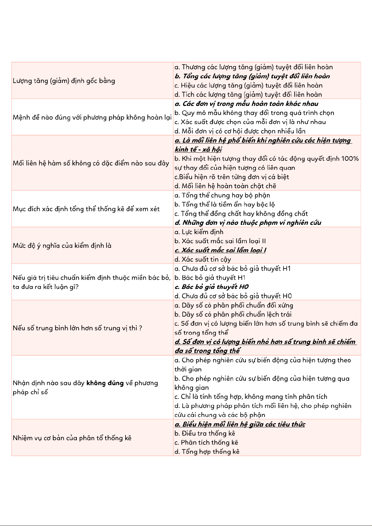 Tài liệu tổng hợp trắc nghiệm ôn tập Thống kê | Thống kê trong kinh tế và kinh doanh | Trường Đại học Kinh tế Quốc dân
