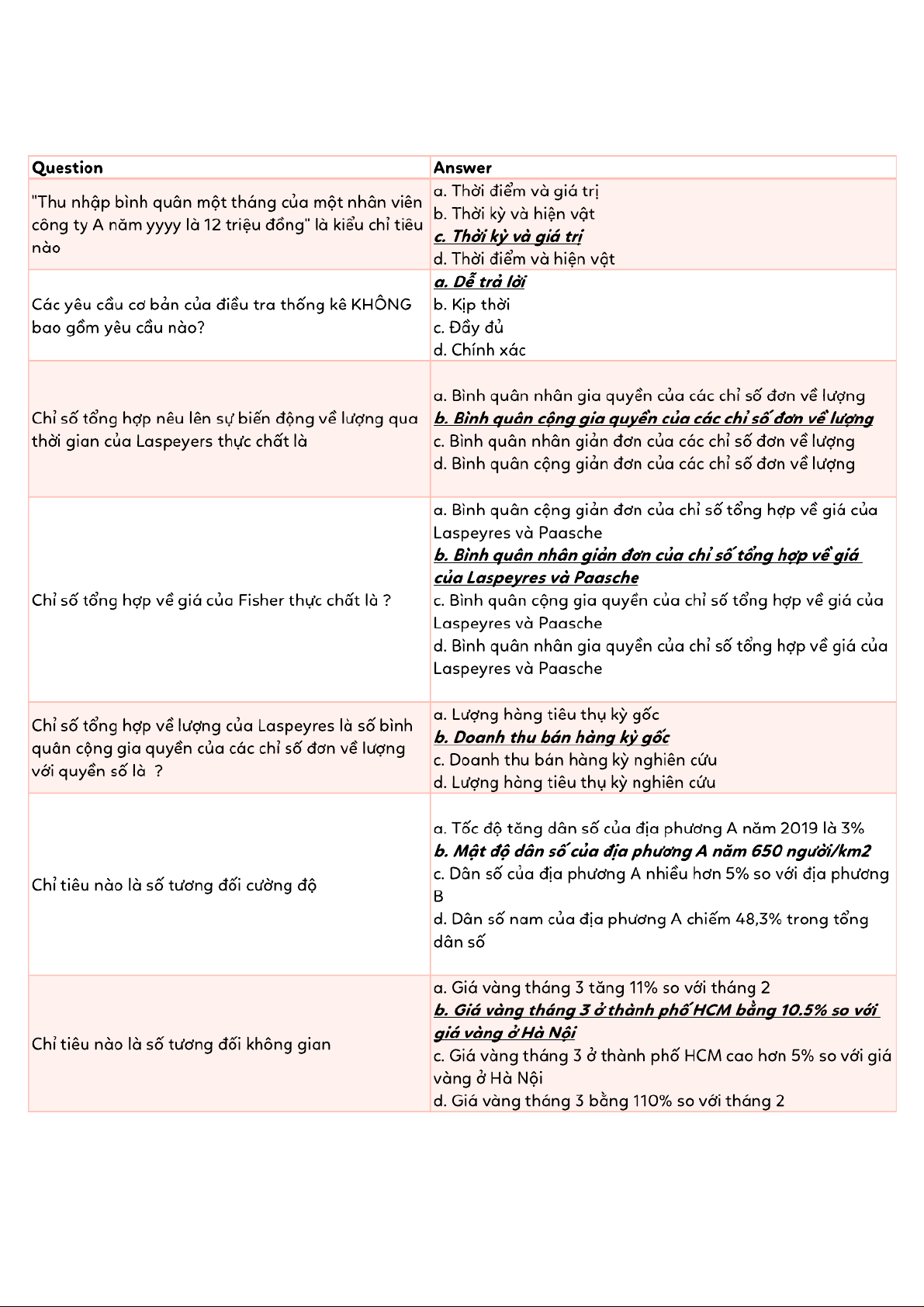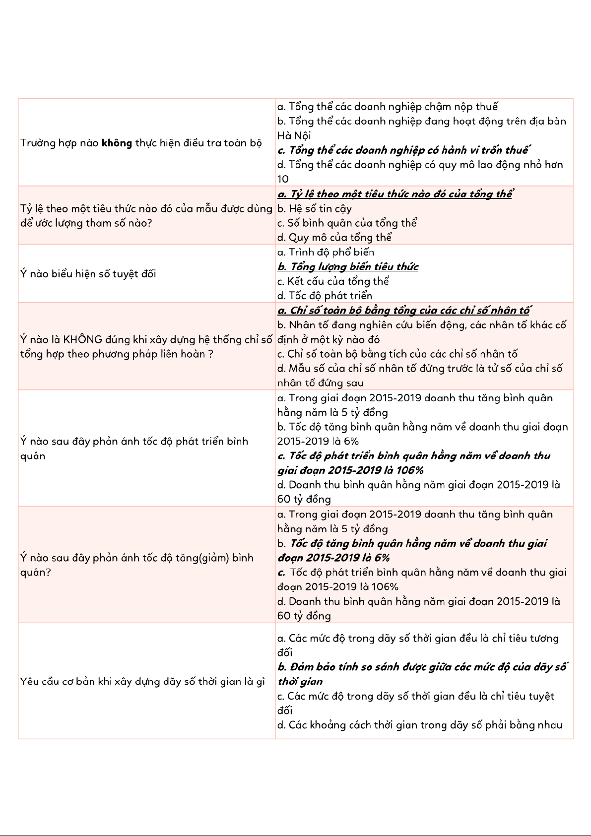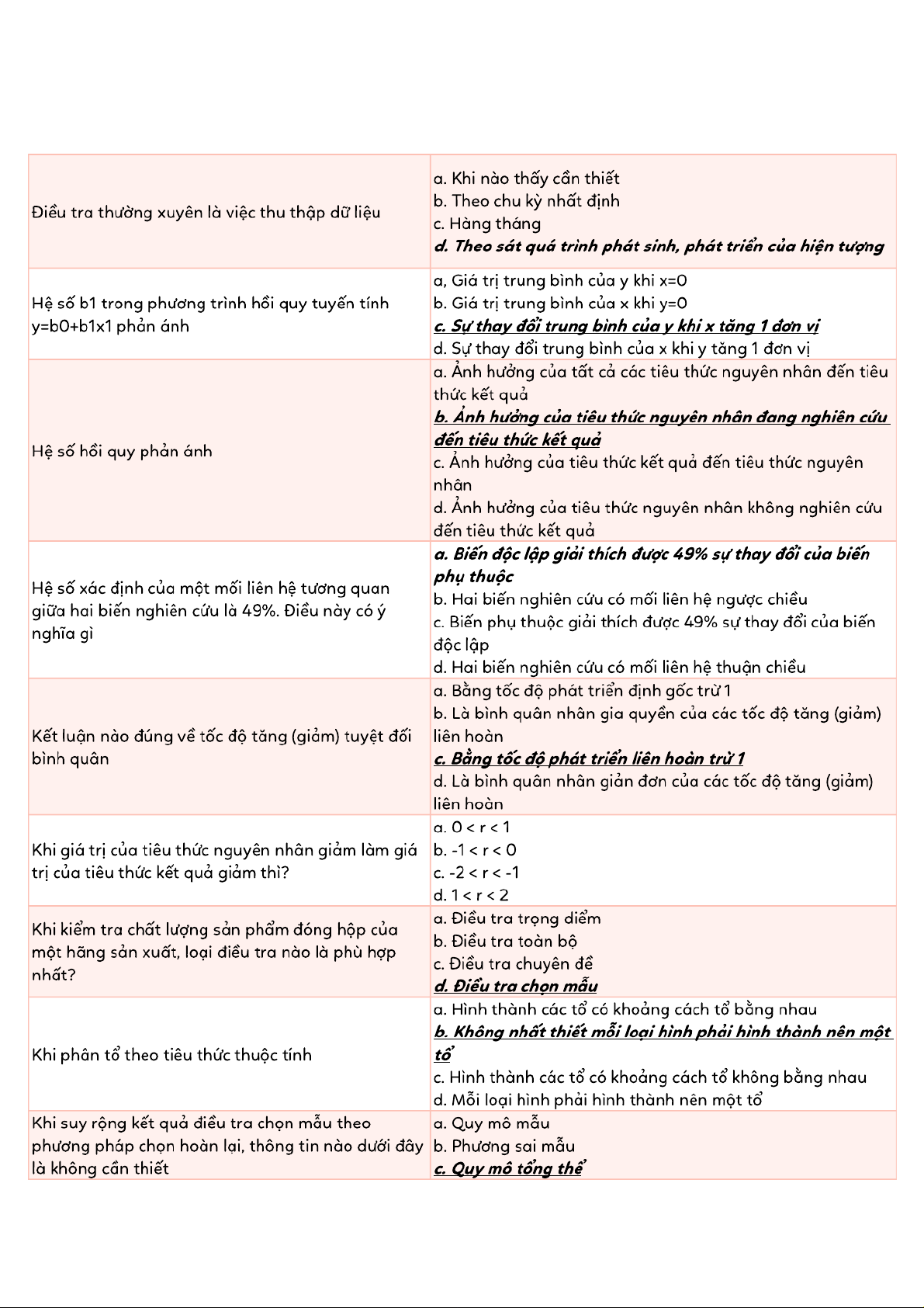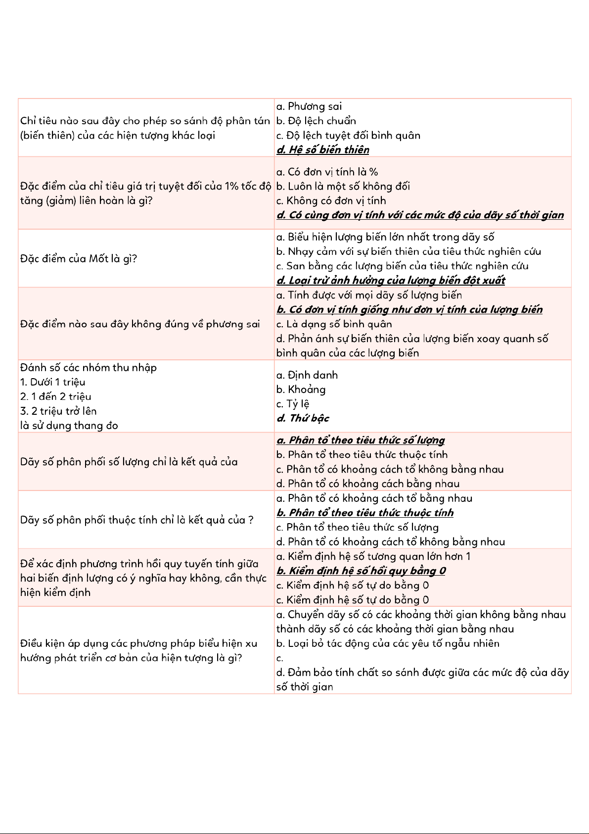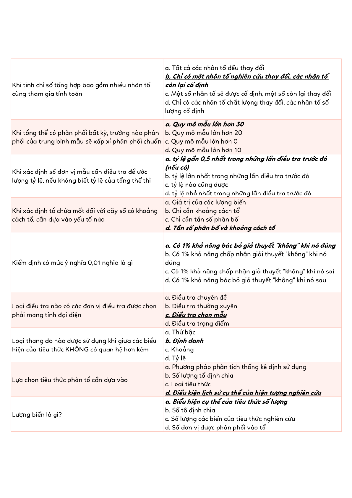 Tài liệu tổng hợp trắc nghiệm ôn tập Thống kê | Thống kê trong kinh tế và kinh doanh | Trường Đại học Kinh tế Quốc dân