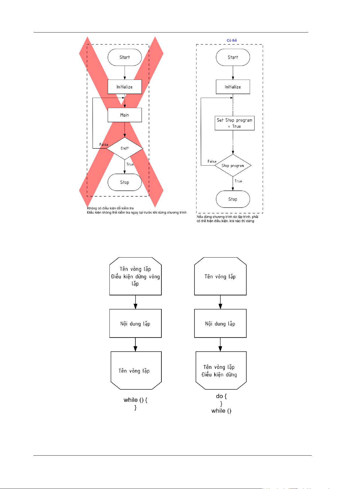 2. Khi đặt kiểm tra điều kiện kết thúc, trong chương trình phải có tác vụ liên quan tới điều kiện kết thúc.