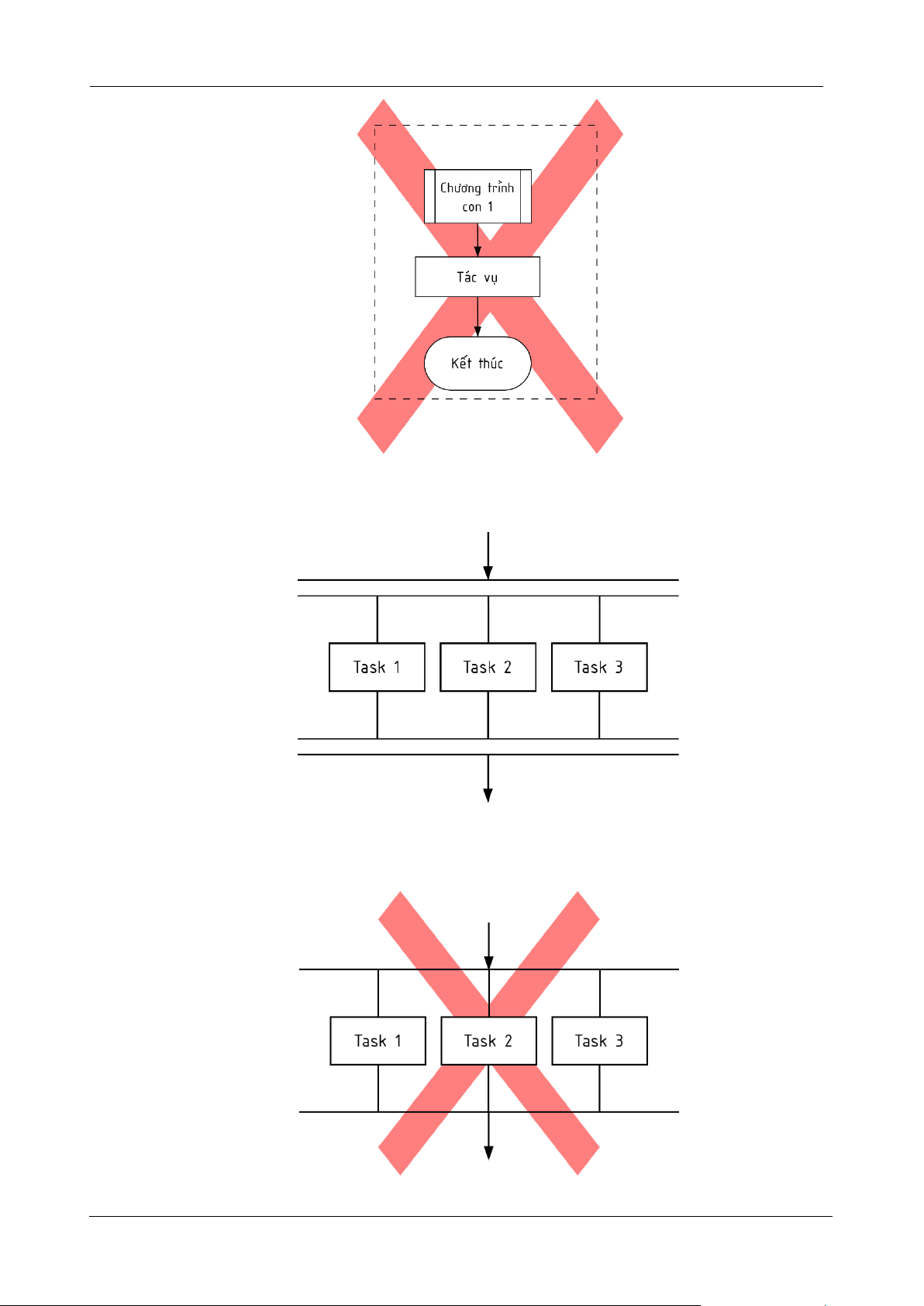 Không sử dụng các đường đơn chia nhánh để biểu diễn chương trình song song.