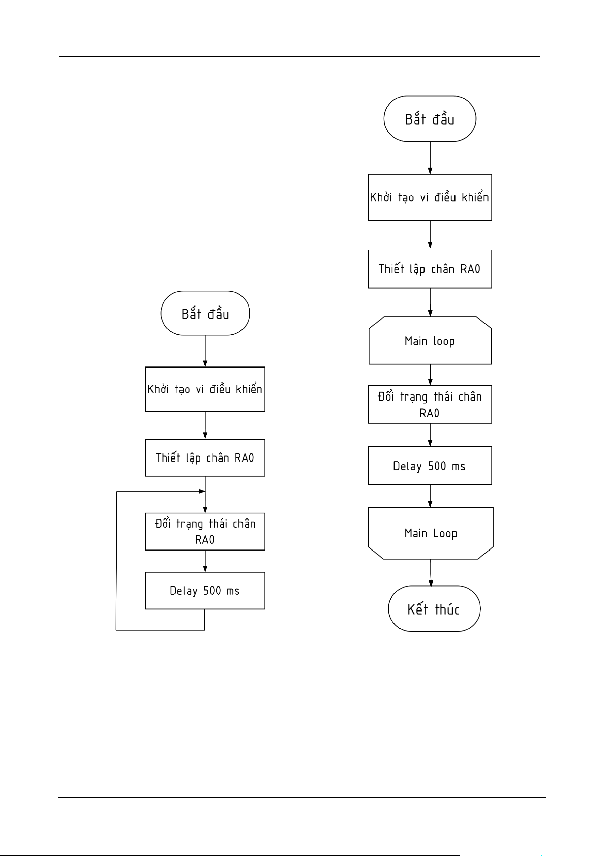 Ví dụ 4: Đền chớp tắt sau mỗi 500ms, sau khi nhấn nút thì chương trình kết thúc.