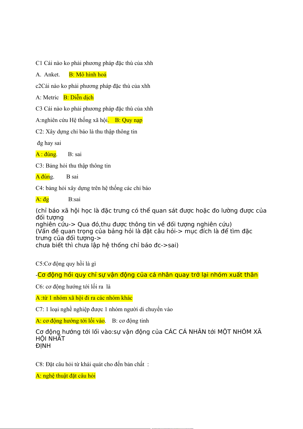C1 Cái nào ko phải phương pháp đặc thù của xhh A. Anket. B: Mô hình hoá
