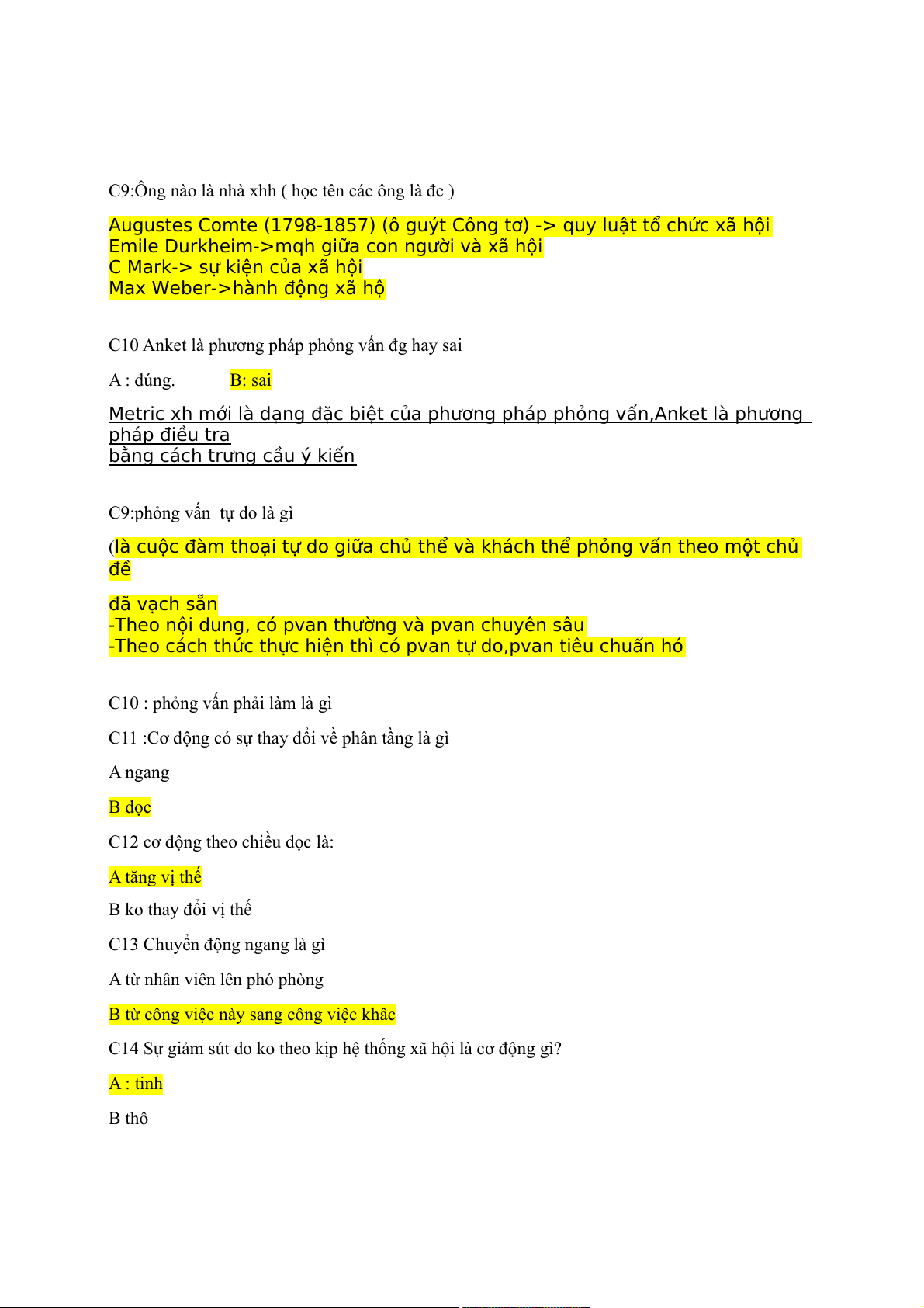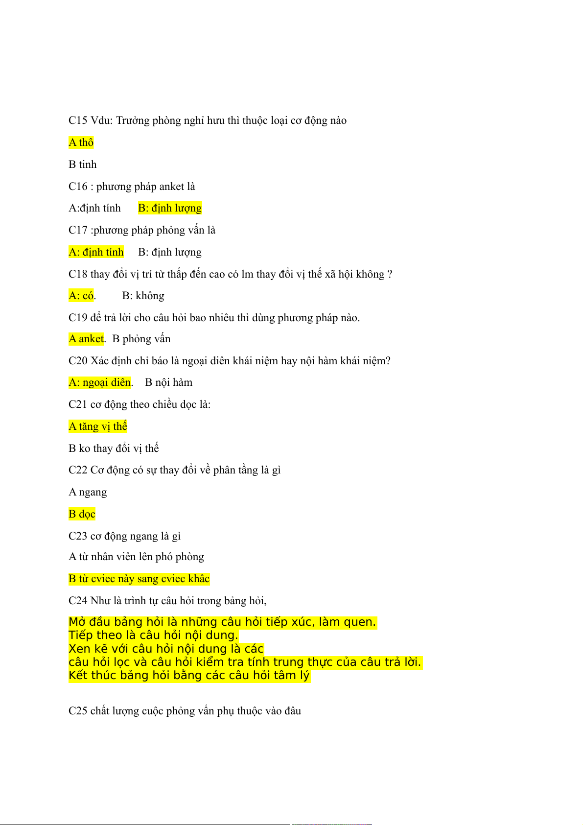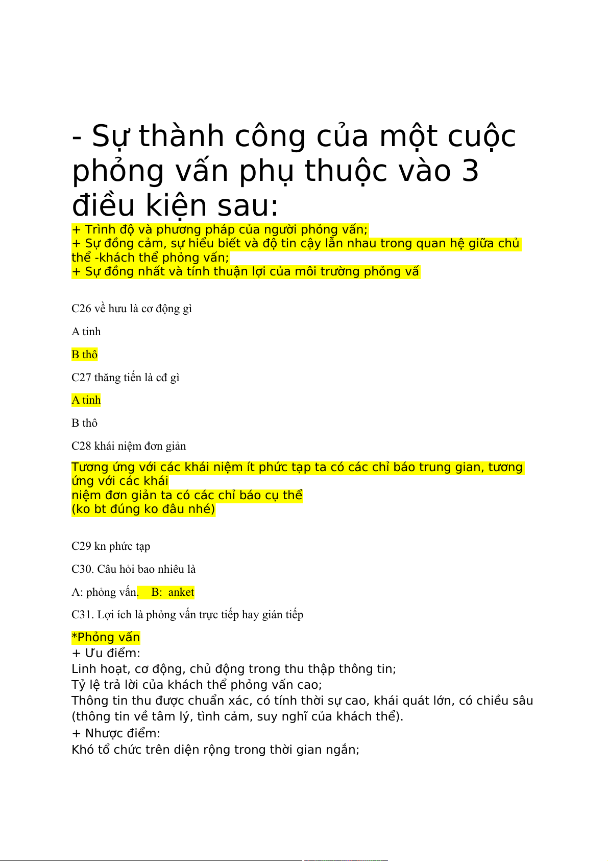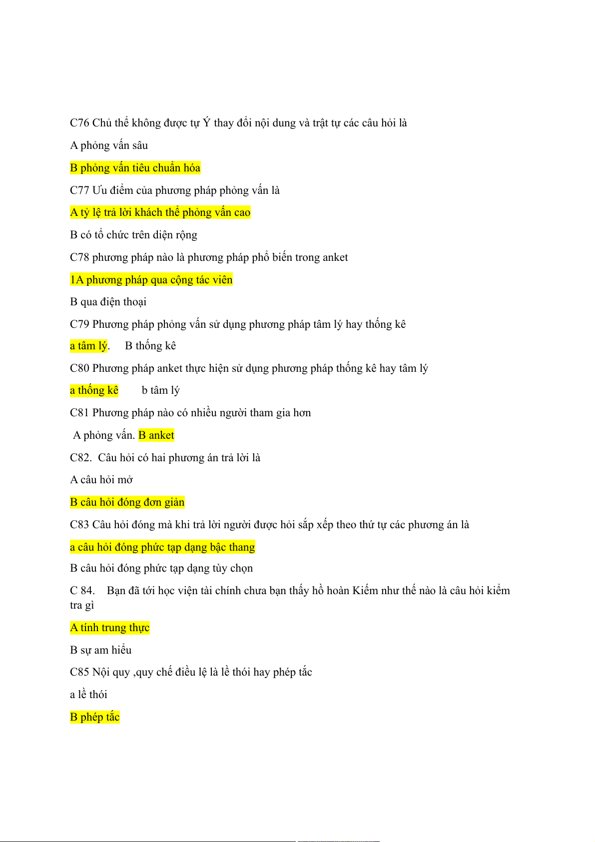 C10 Anket là phương pháp phỏng vấn đg hay sai A : đúng. B: sai