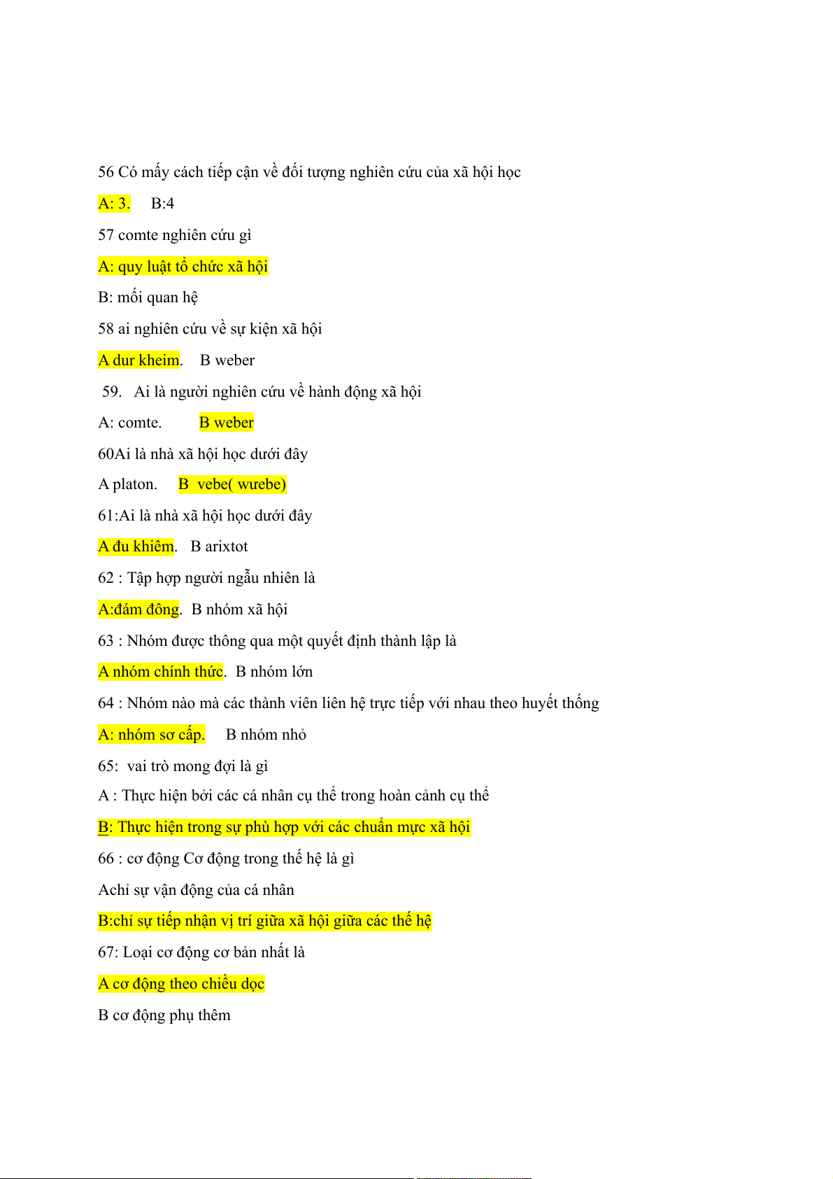 56 Có mấy cách tiếp cận về đối tượng nghiên cứu của xã hội học A: 3. B:4 57 comte nghiên cứu gì
