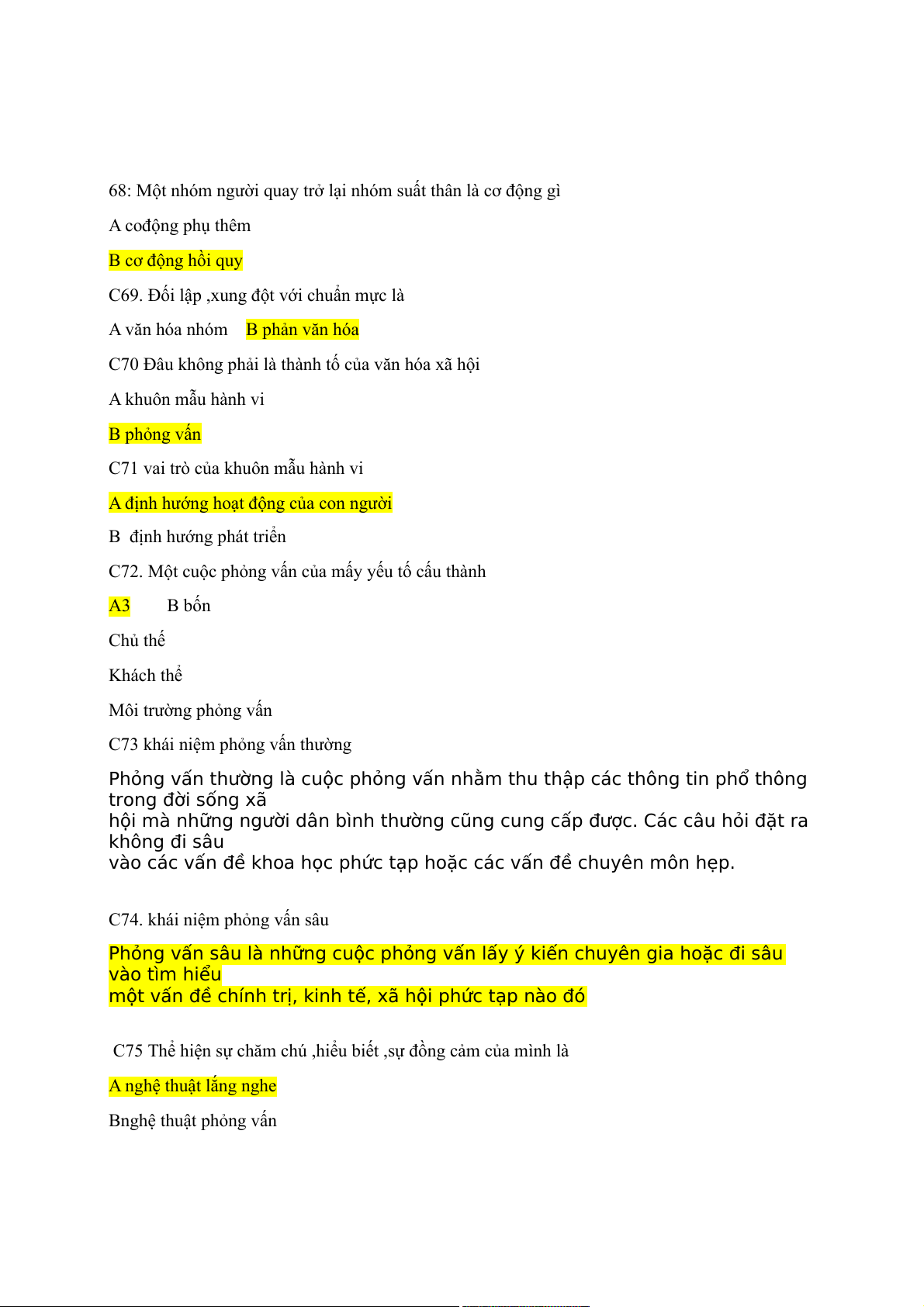 C70 Đâu không phải là thành tố của văn hóa xã hội A khuôn mẫu hành vi B phỏng vấn