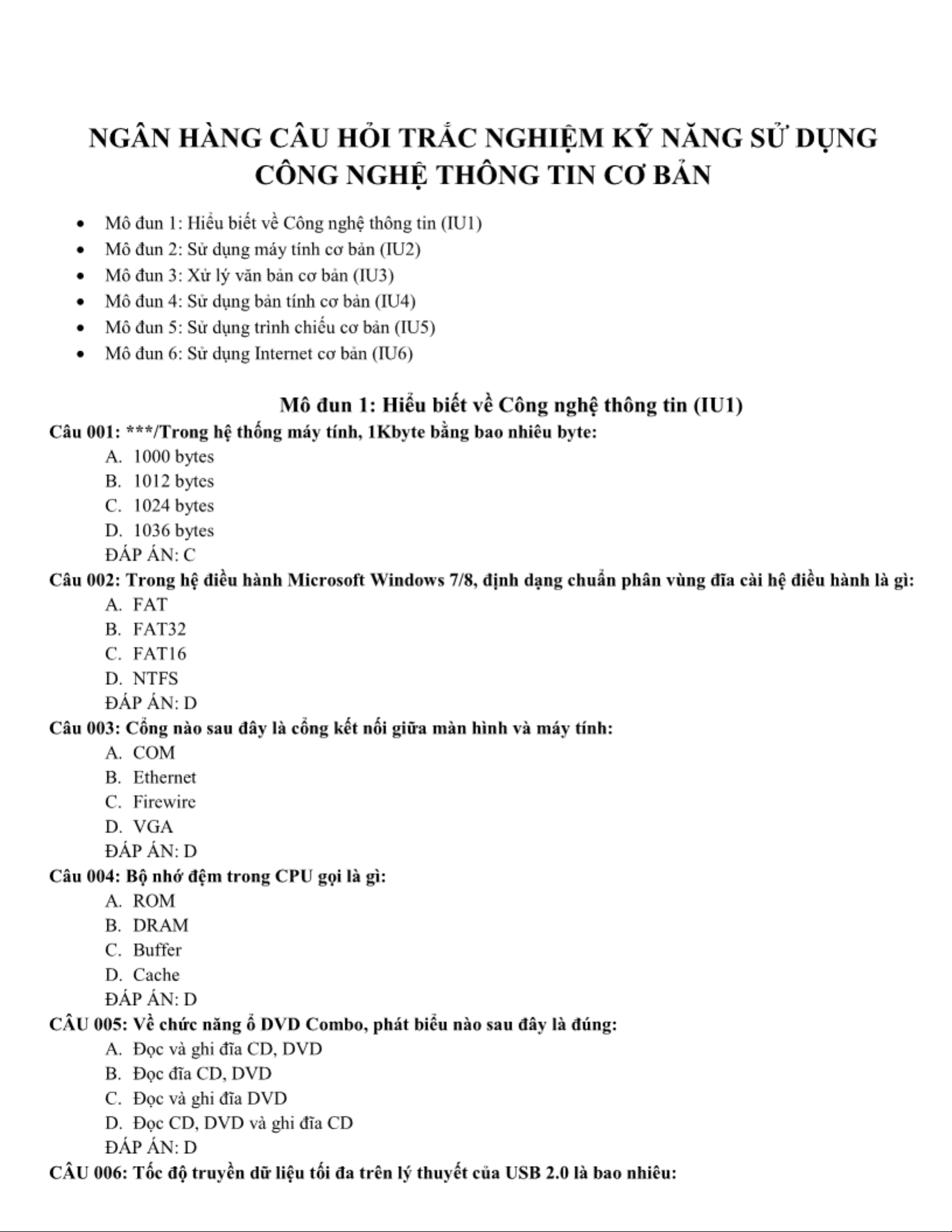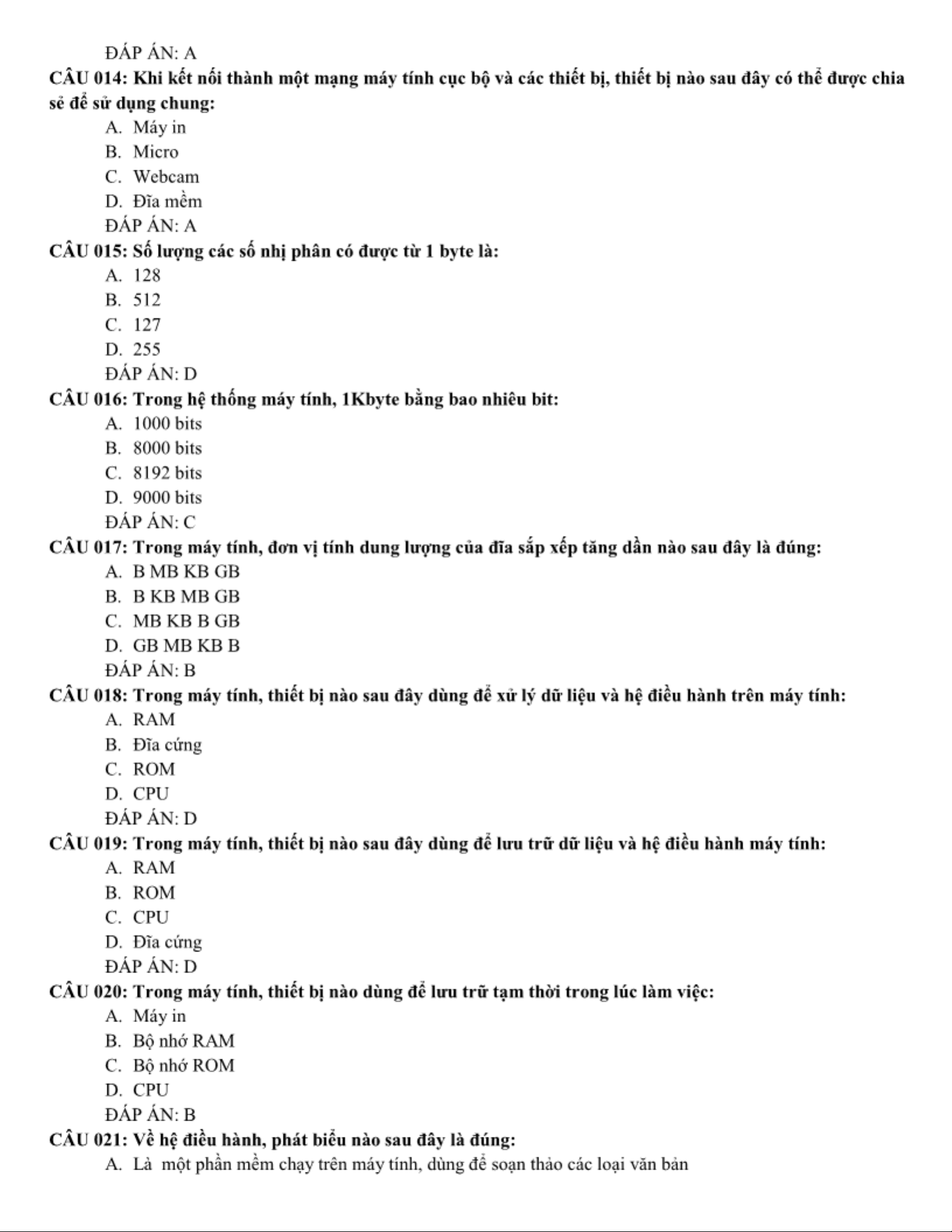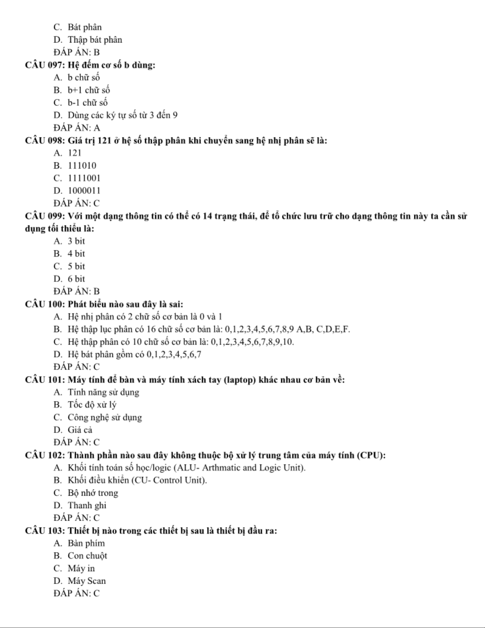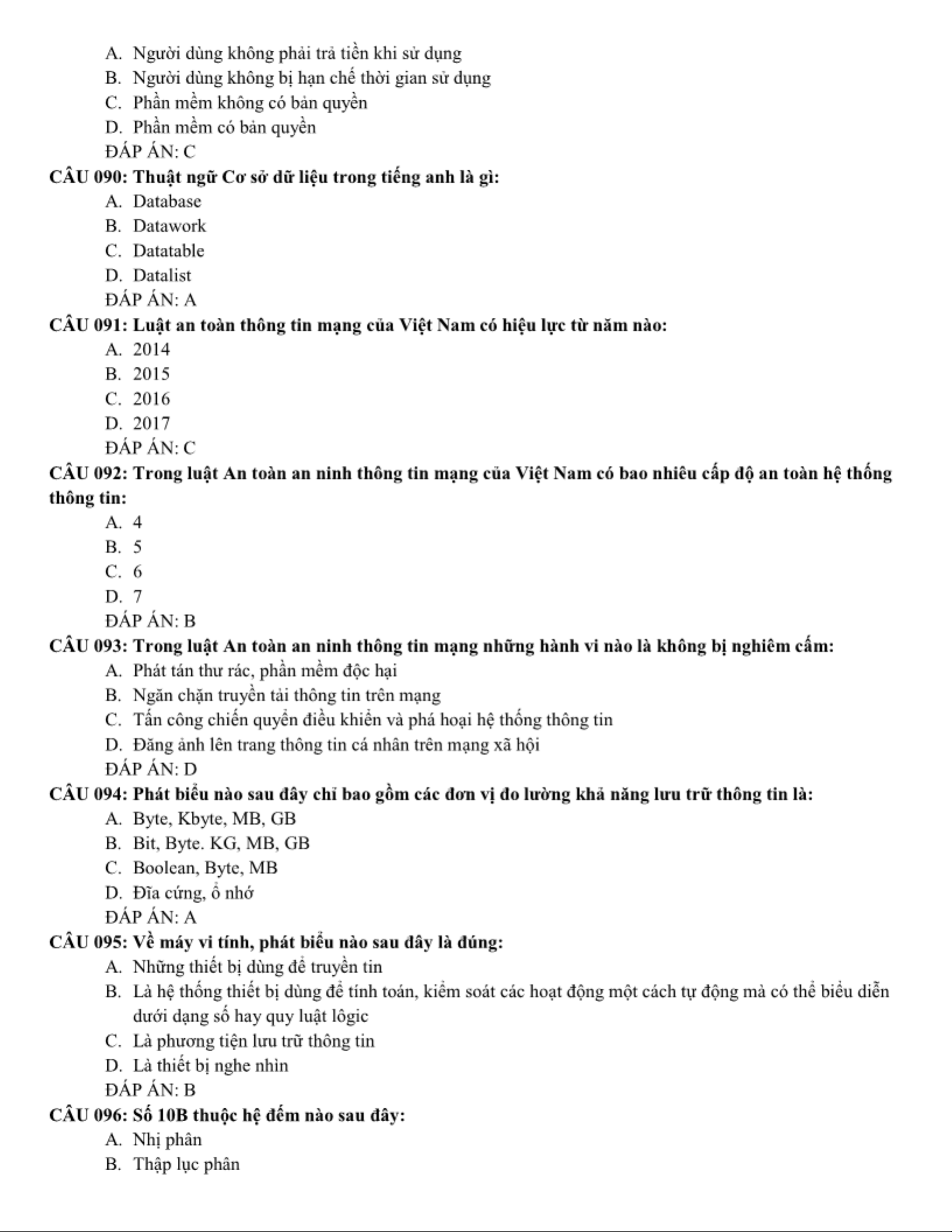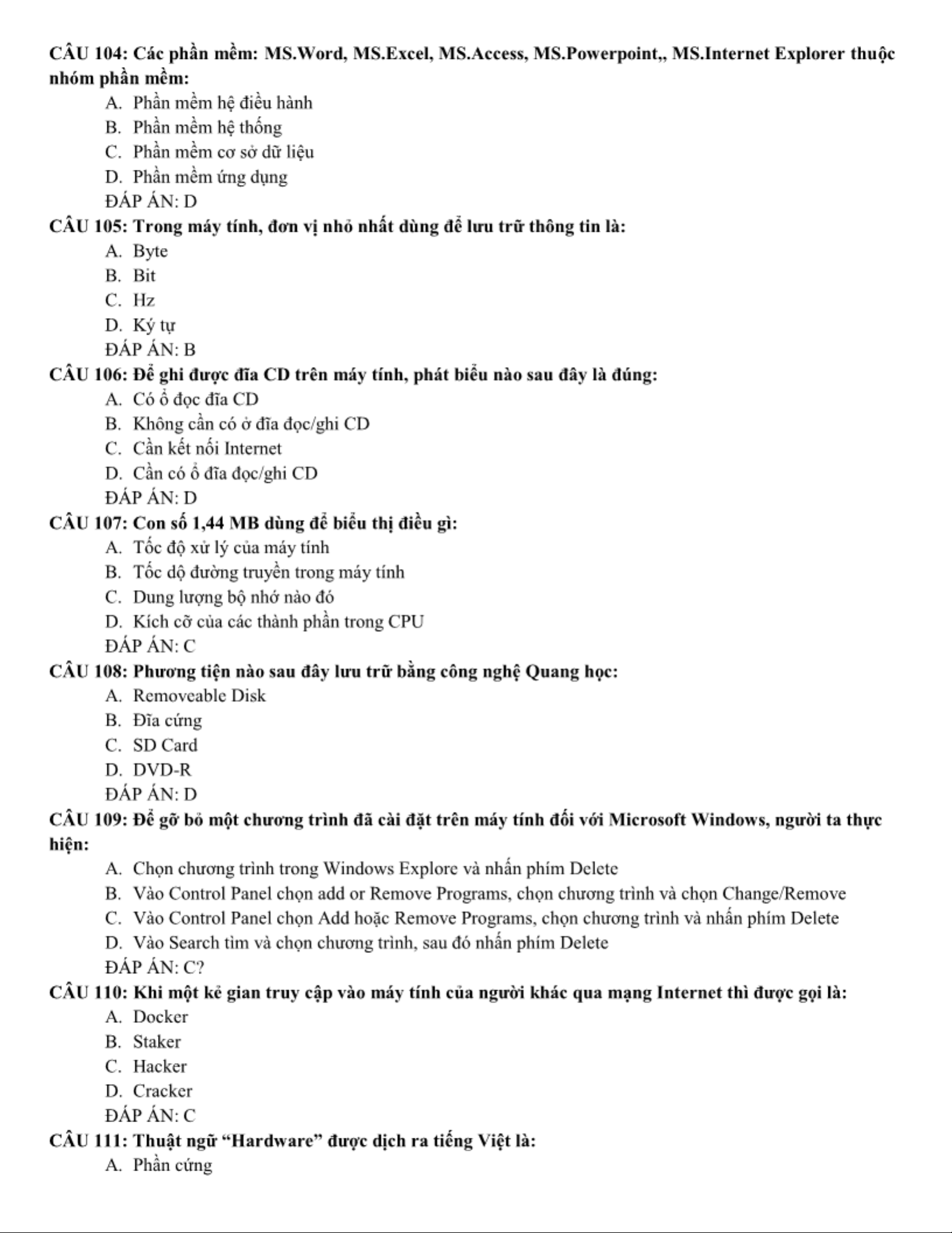 LÝ THUYẾT TIN HỌC CƠ SỞ - Tổng hợp nội dung và câu hỏi ôn tập. Môn Giới thiệu về Công nghệ thông tin | Trường Đại học Công nghệ, Đại học Quốc gia Hà Nội.