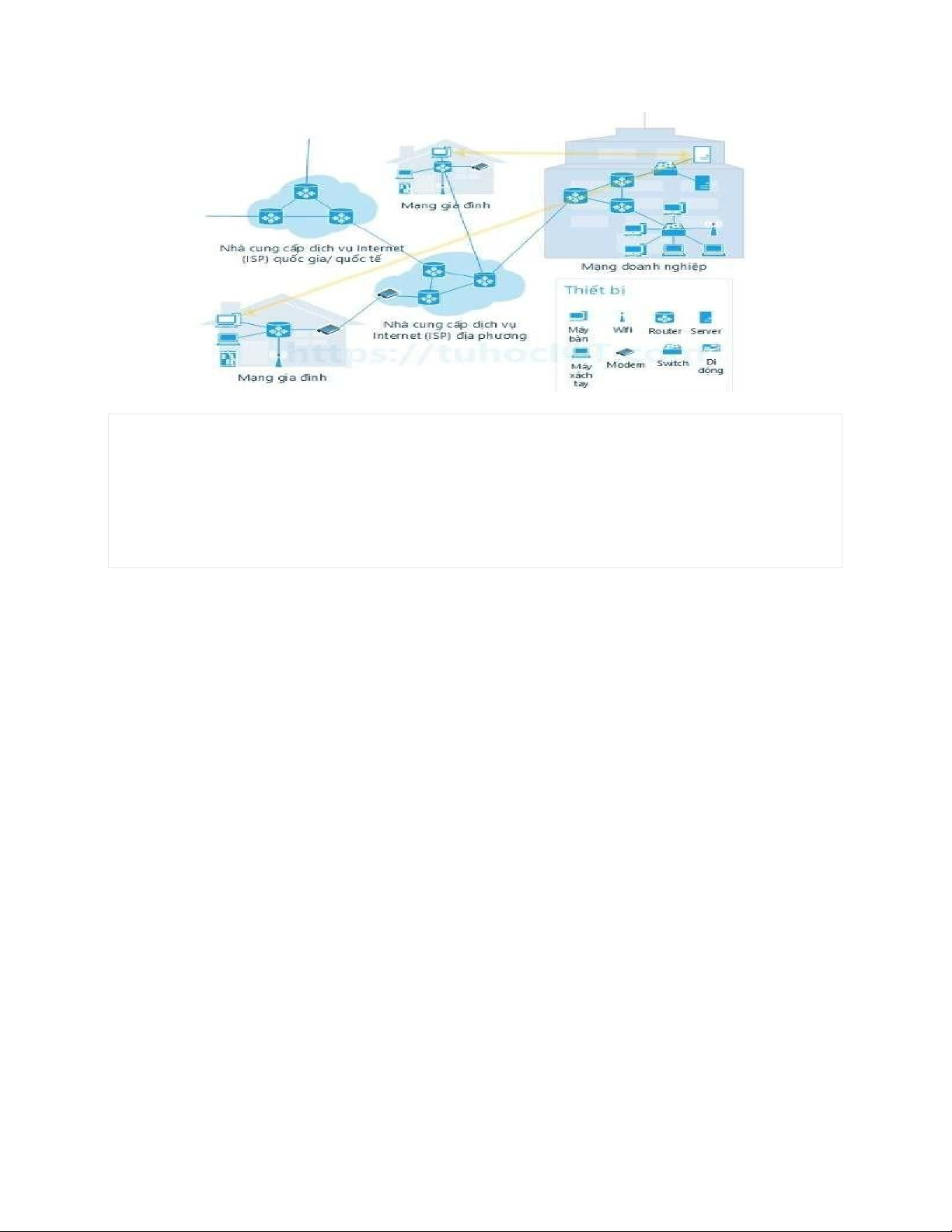 internet gồm các thiết bị dây cáp, router, switch, trạm thu/phát…đến nơi nhận