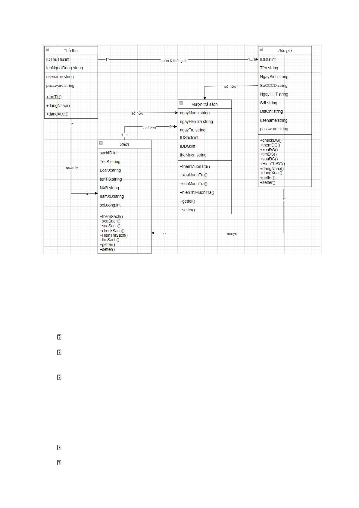 gian sử dụng. Có quan hệ mượn trả với lớp Sách. Phương thức: