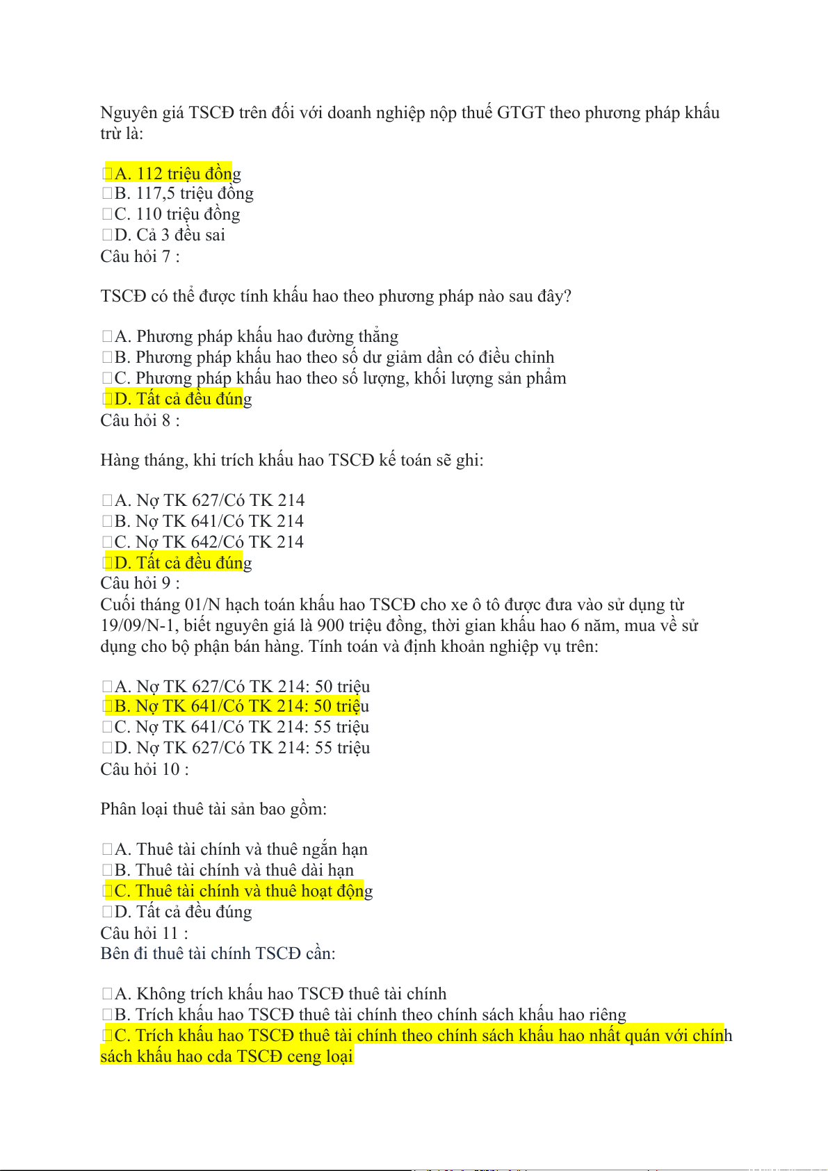 C. Phương pháp khấu hao theo số lượng, khối lượng sản phẩm D. Tất cả đều đúng Câu hỏi 8 :