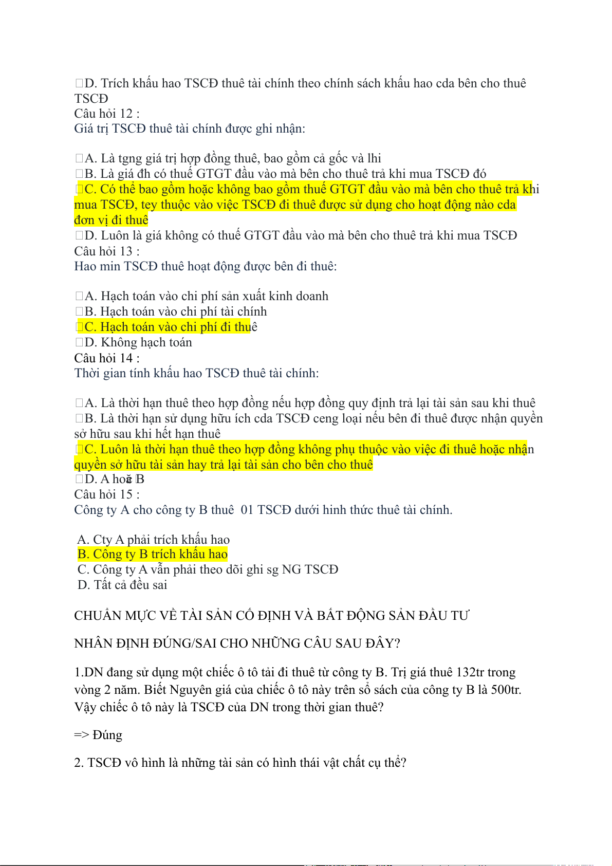 15.Khi DN đi thuê TSCĐ theo hình thức thuê tài chính thì DN vẫn phải tính khấu hao? => Đúng