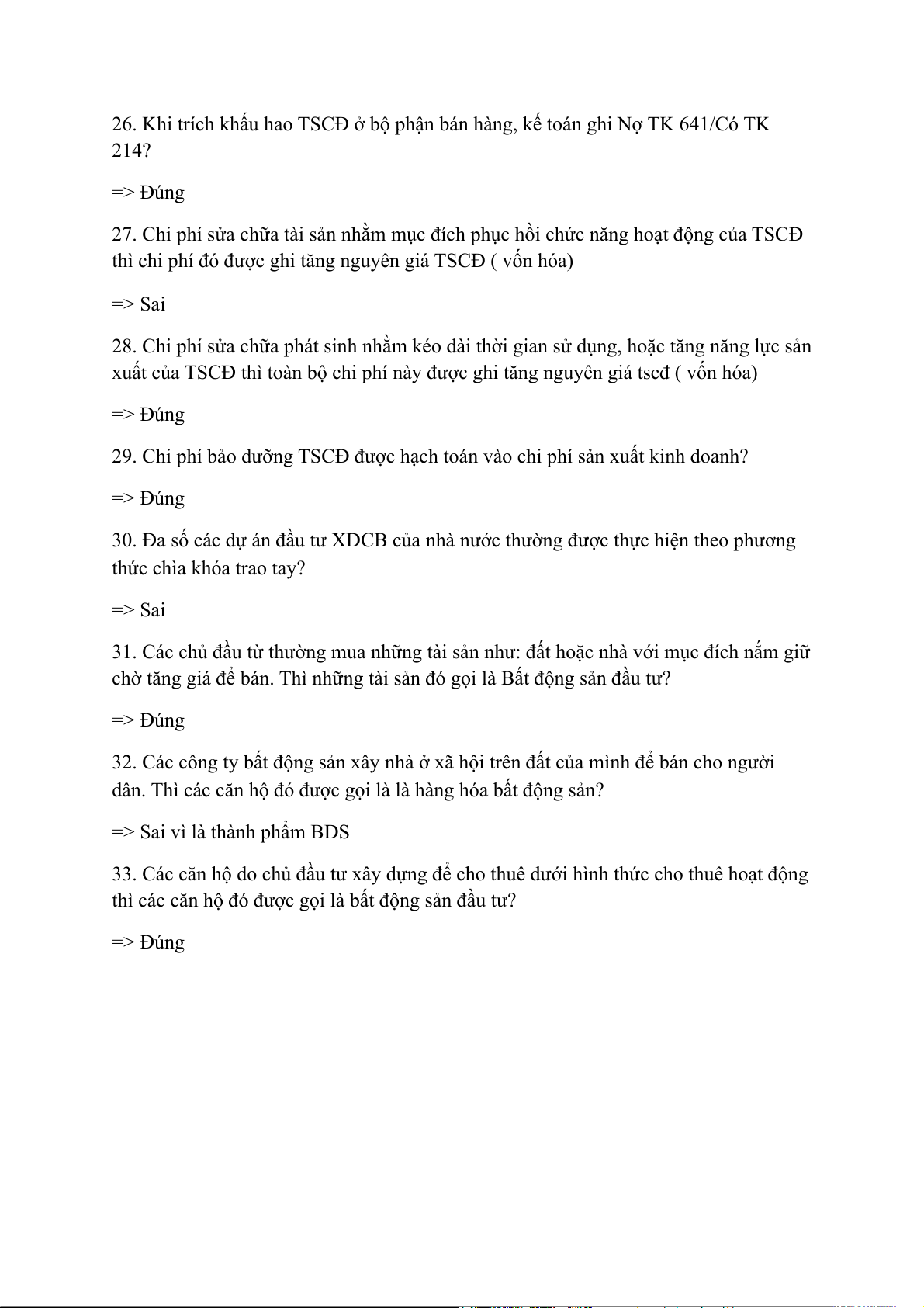 29. Chi phí bảo dưỡng TSCĐ được hạch toán vào chi phí sản xuất kinh doanh? => Đúng