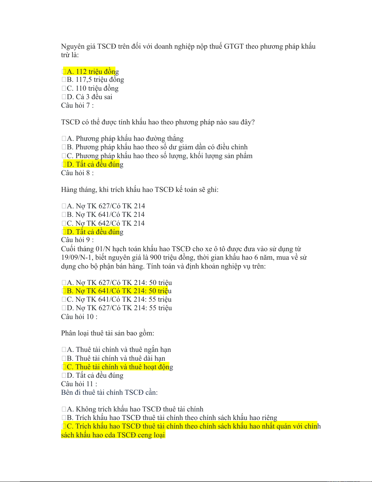 C. Phương pháp khấu hao theo số lượng, khối lượng sản phẩm D. Tất cả đều đúng Câu hỏi 8 :