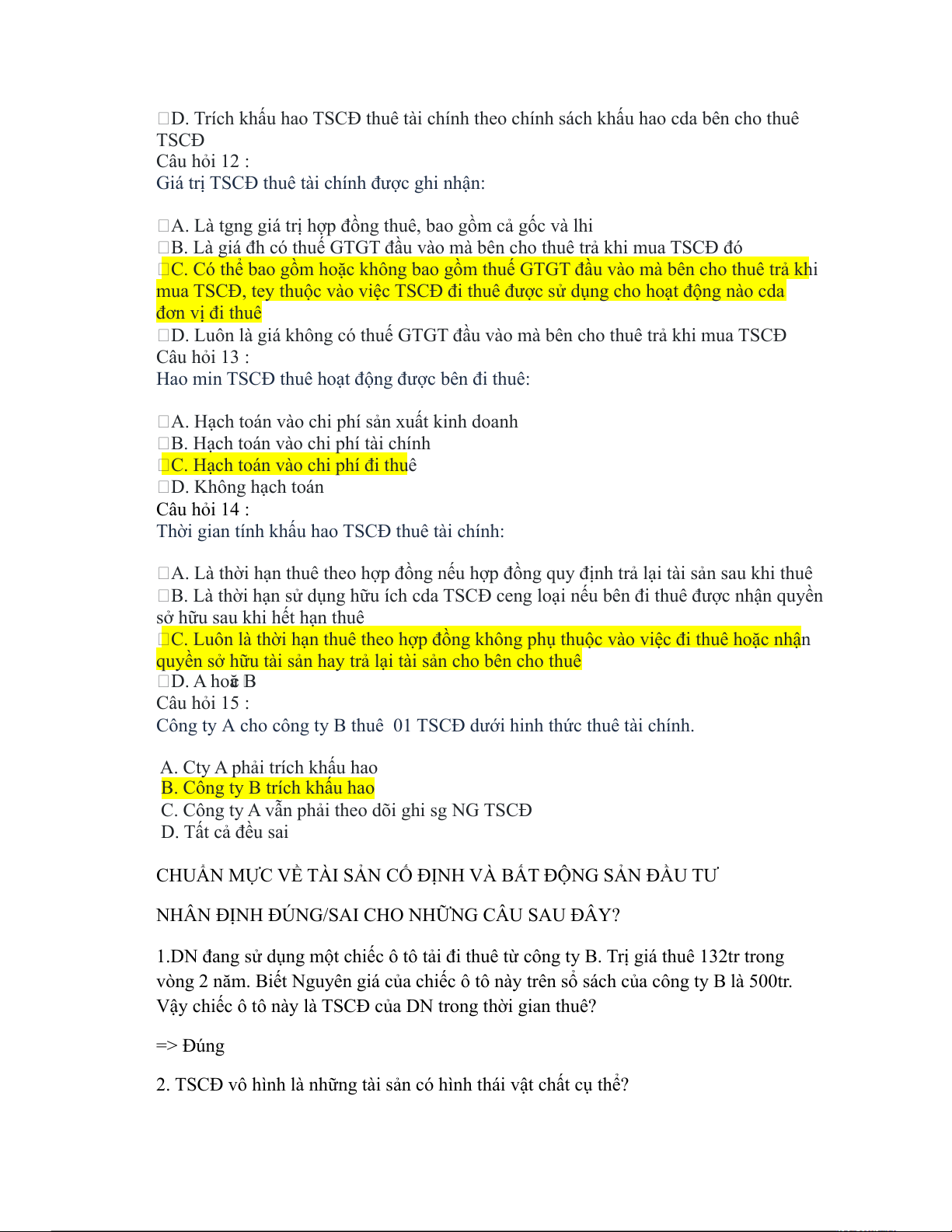 15.Khi DN đi thuê TSCĐ theo hình thức thuê tài chính thì DN vẫn phải tính khấu hao? => Đúng