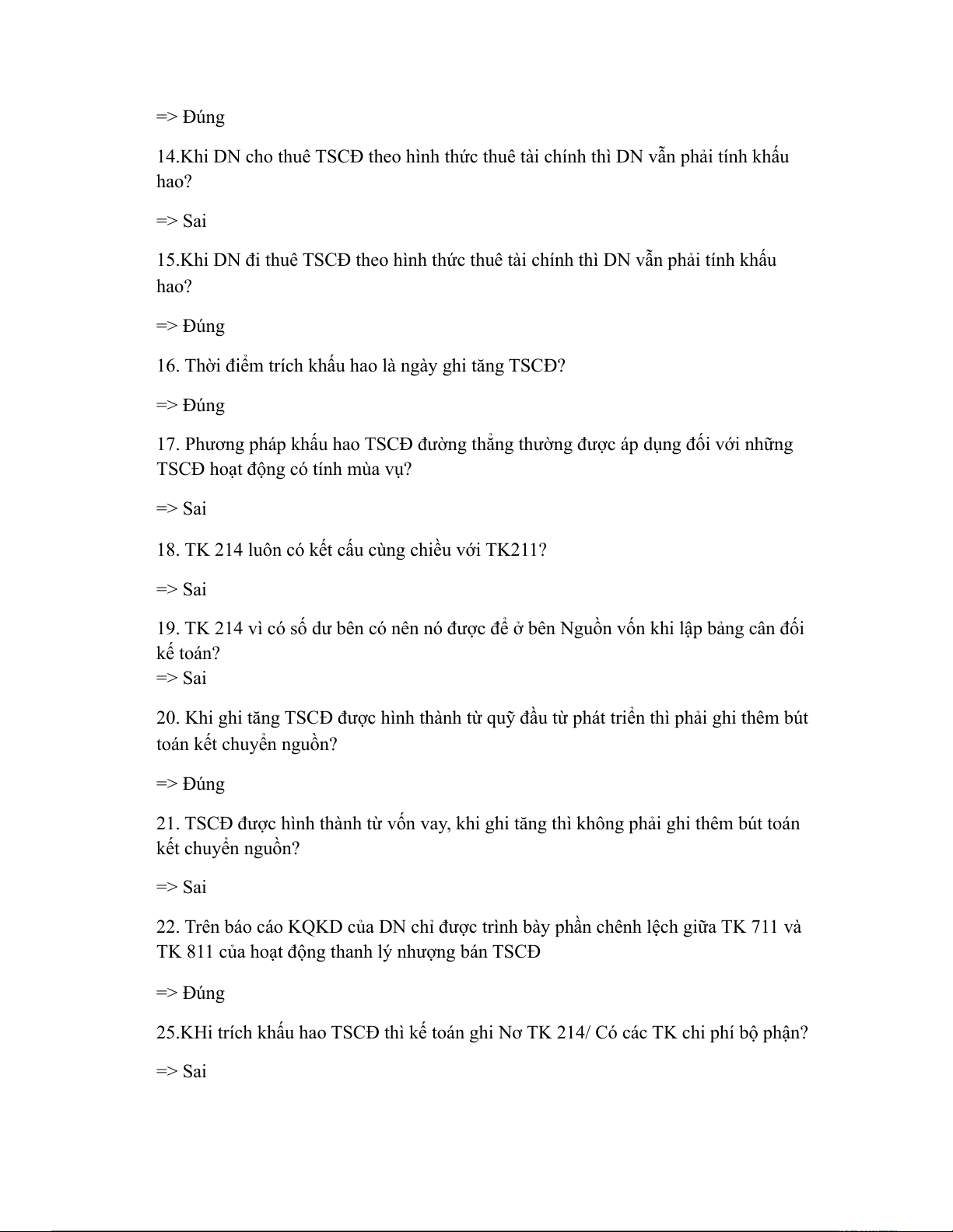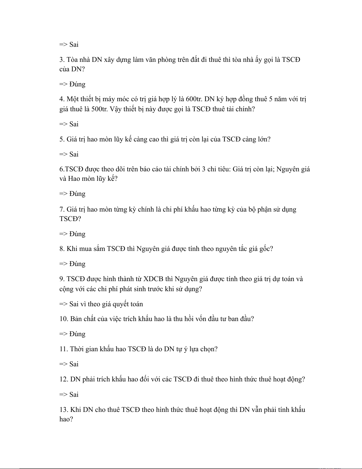 13. Khi DN cho thuê TSCĐ theo hình thức thuê hoạt động thì DN vẫn phải tính khấu hao? => Đúng