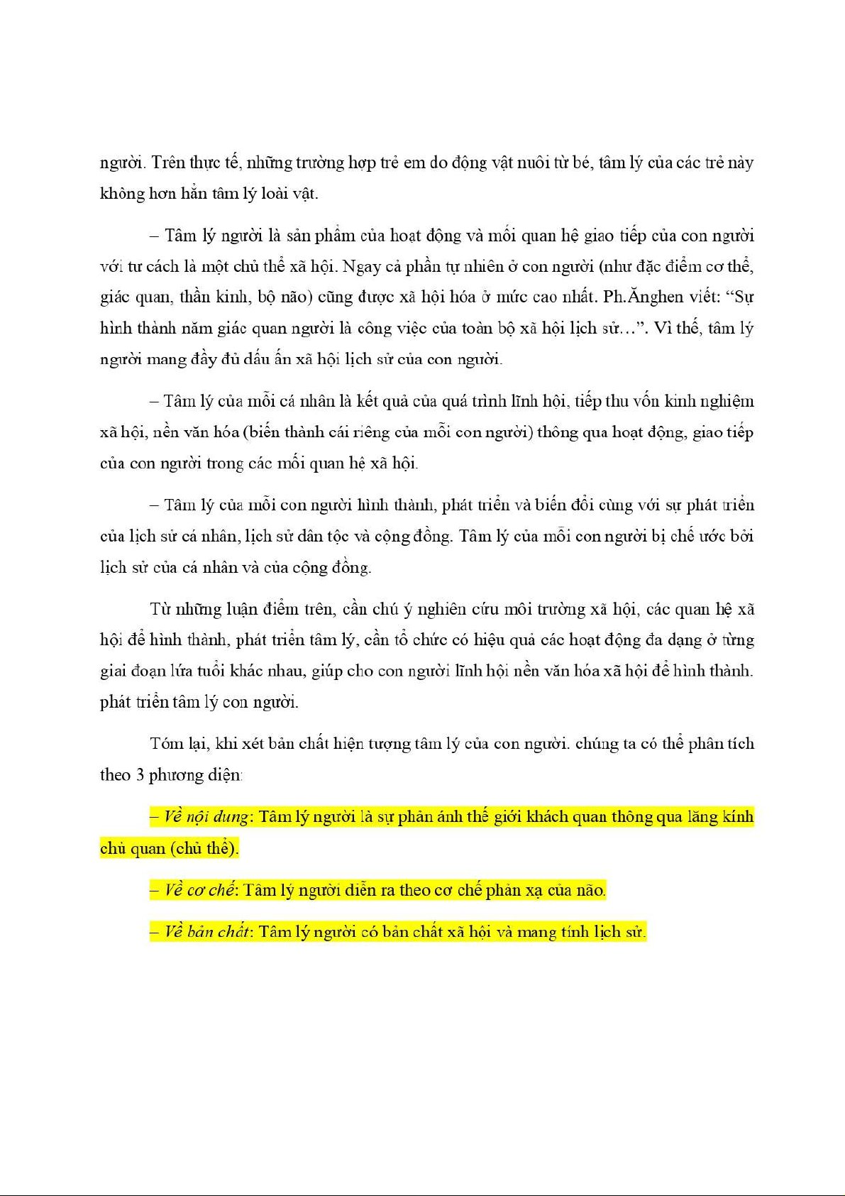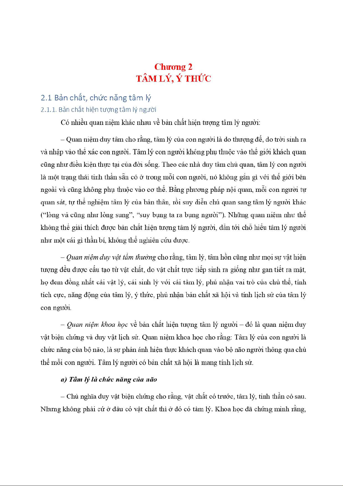 Chương 2: Tâm lý, ý thức | Tài liệu môn Tâm lí học