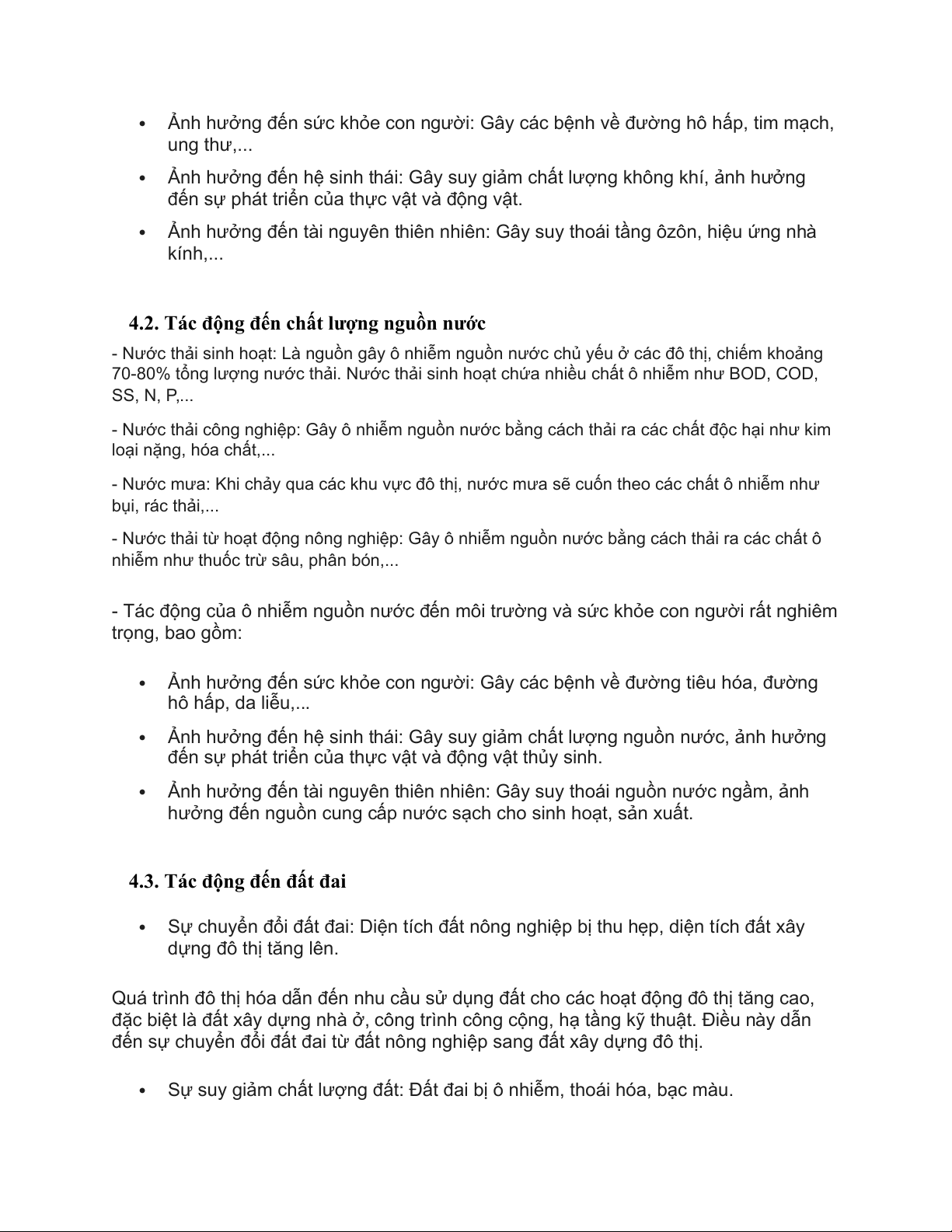 sinh nhiều chất thải, gây ô nhiễm môi trường. Ô nhiễm môi trường làm suy giảm chất