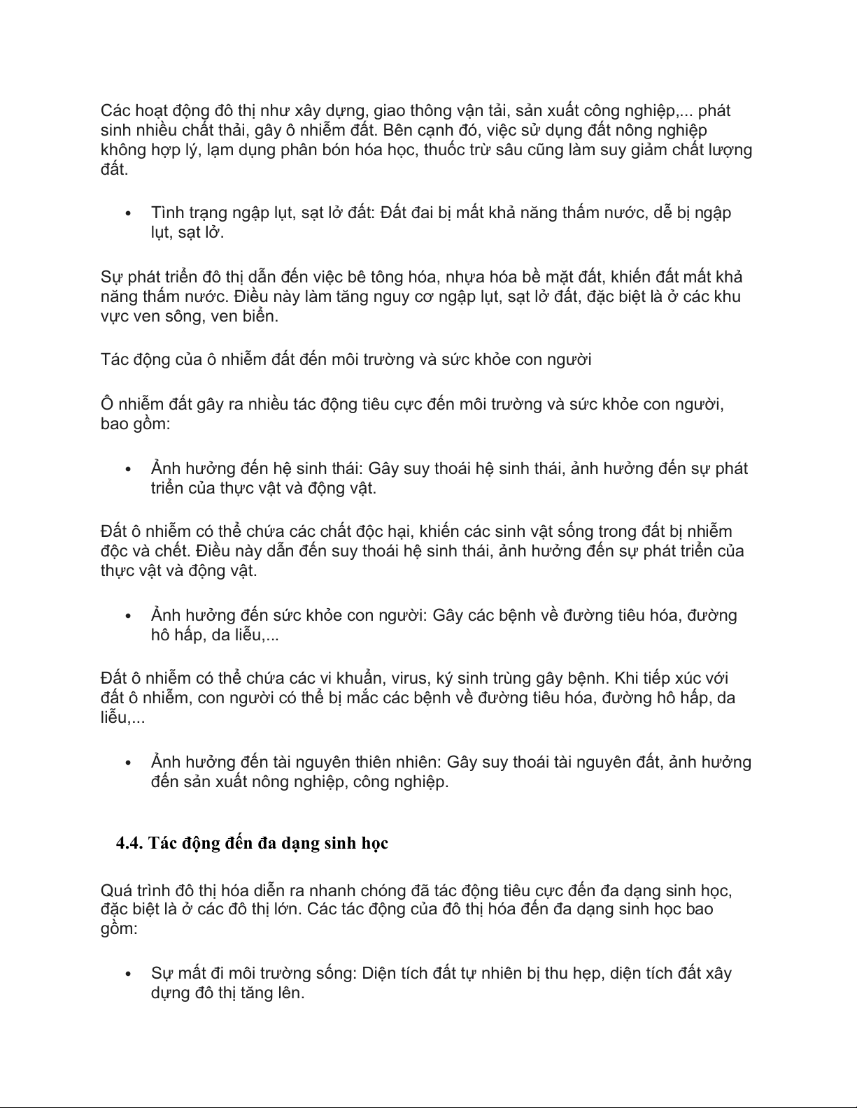 Sự suy giảm chất lượng đất: Đất đai bị ô nhiễm, thoái hóa, bạc màu.