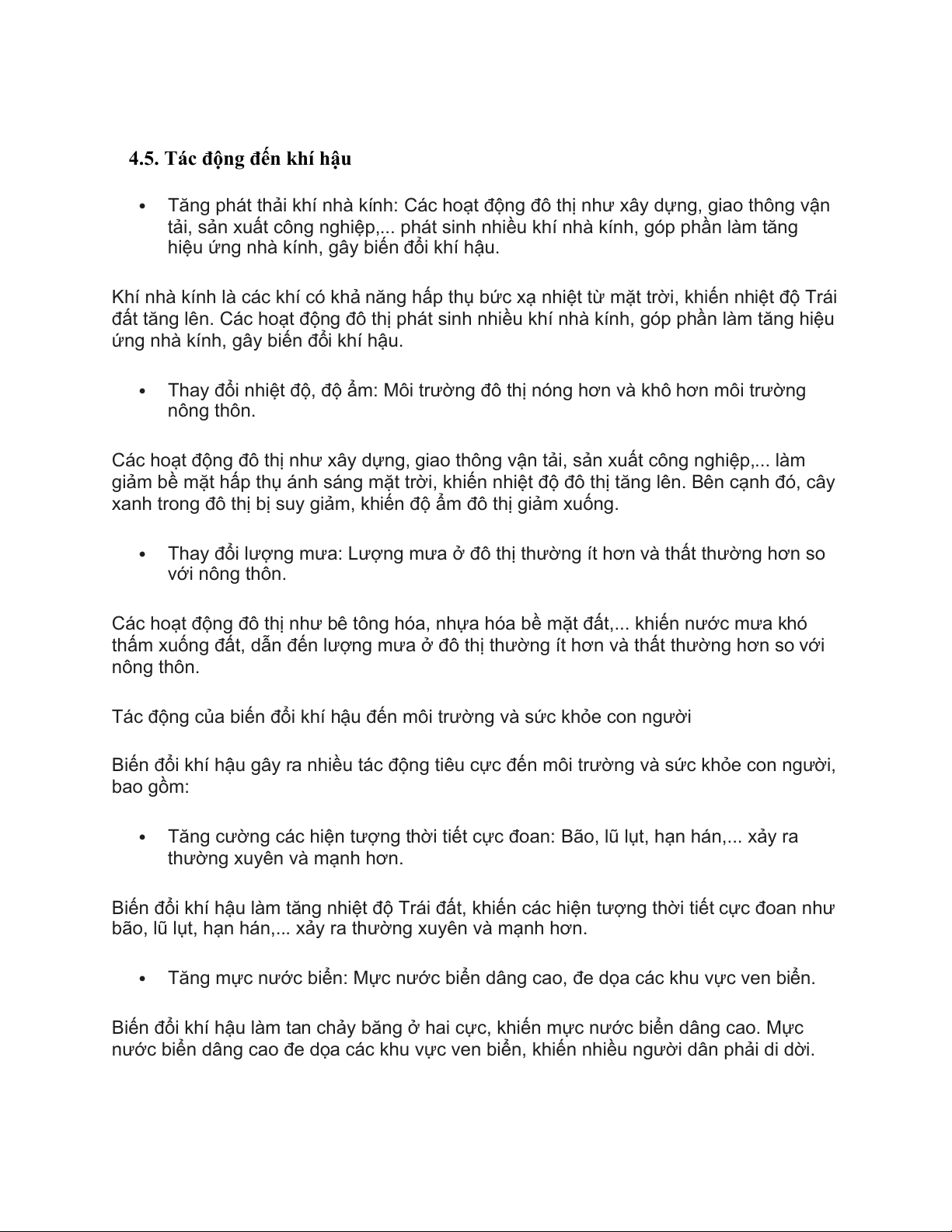 đất tăng lên. Các hoạt động đô thị phát sinh nhiều khí nhà kính, góp phần làm tăng hiệu