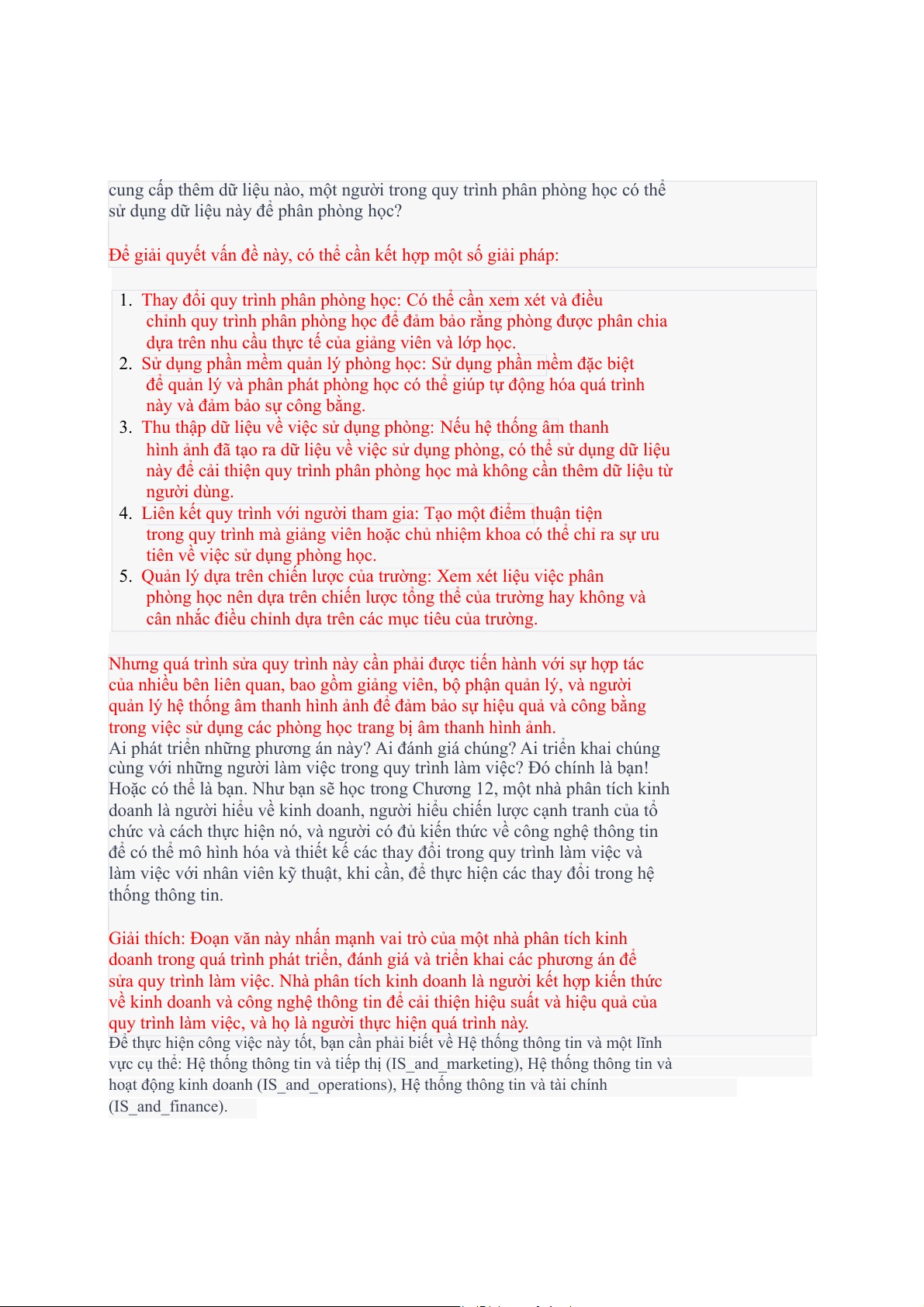 1. Thay đổi quy trình phân phòng học: Có thể cần xem xét và điều
