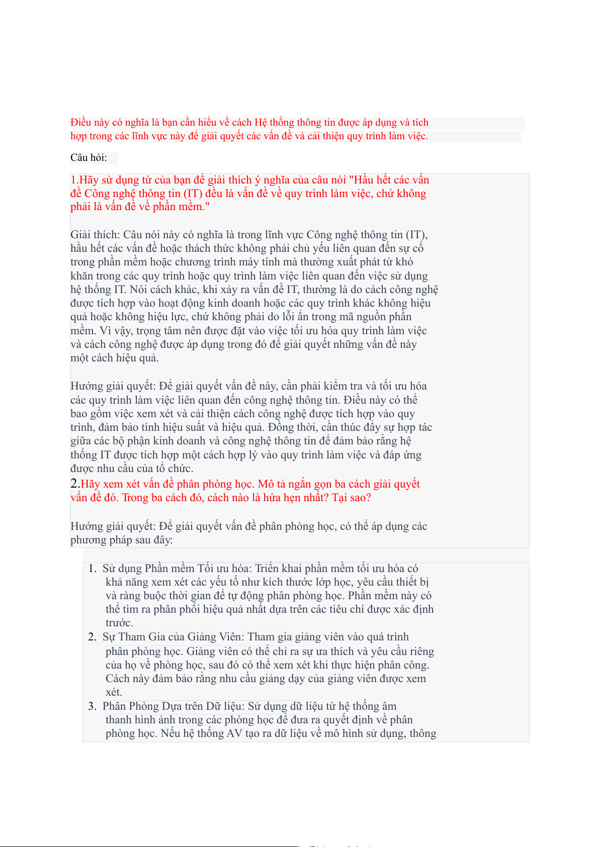 hợp trong các lĩnh vực này để giải quyết các vấn đề và cải thiện quy trình làm việc. Câu hỏi: