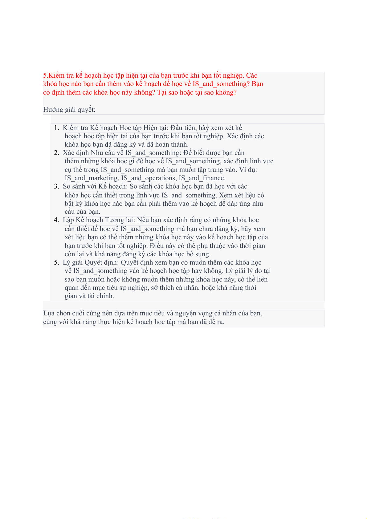 4. Lập Kế hoạch Tương lai: Nếu bạn xác định rằng có những khóa học