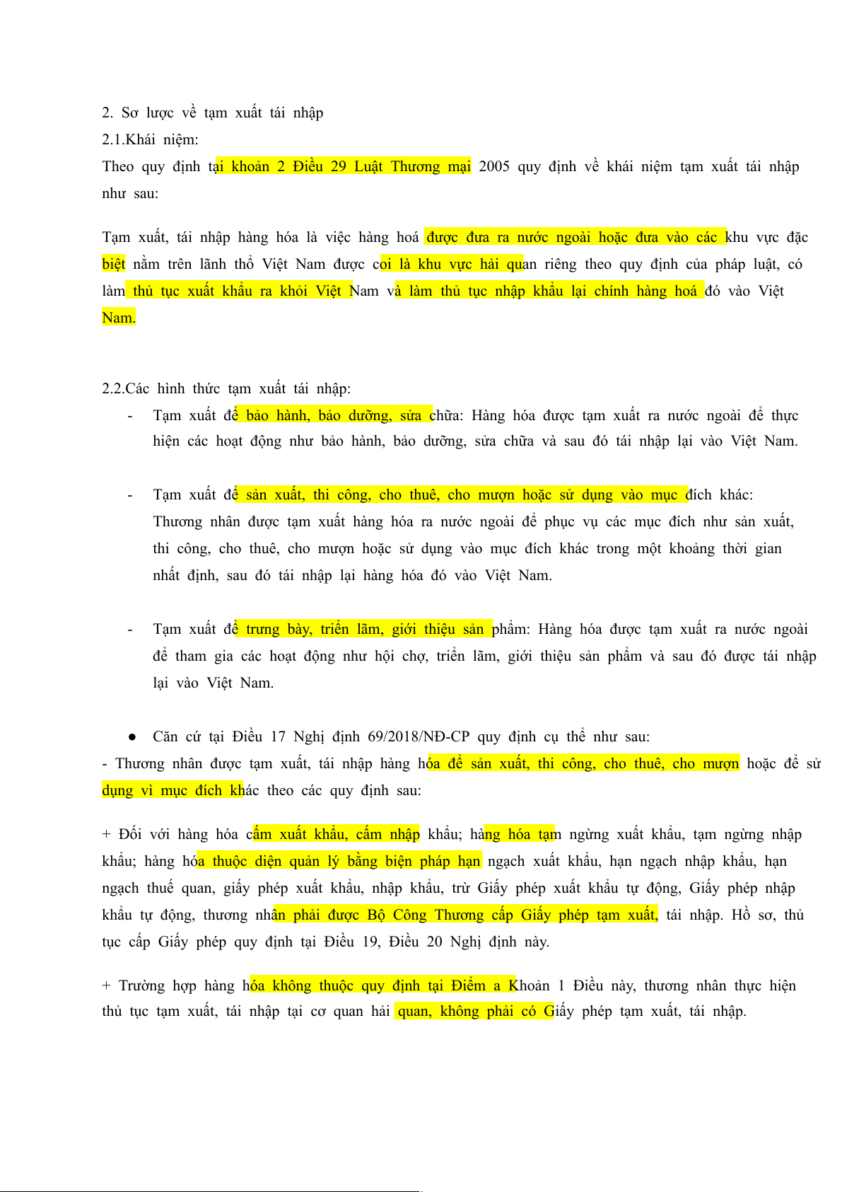 2. Sơ lược về tạm xuất tái nhập 2.1.Khái niệm: