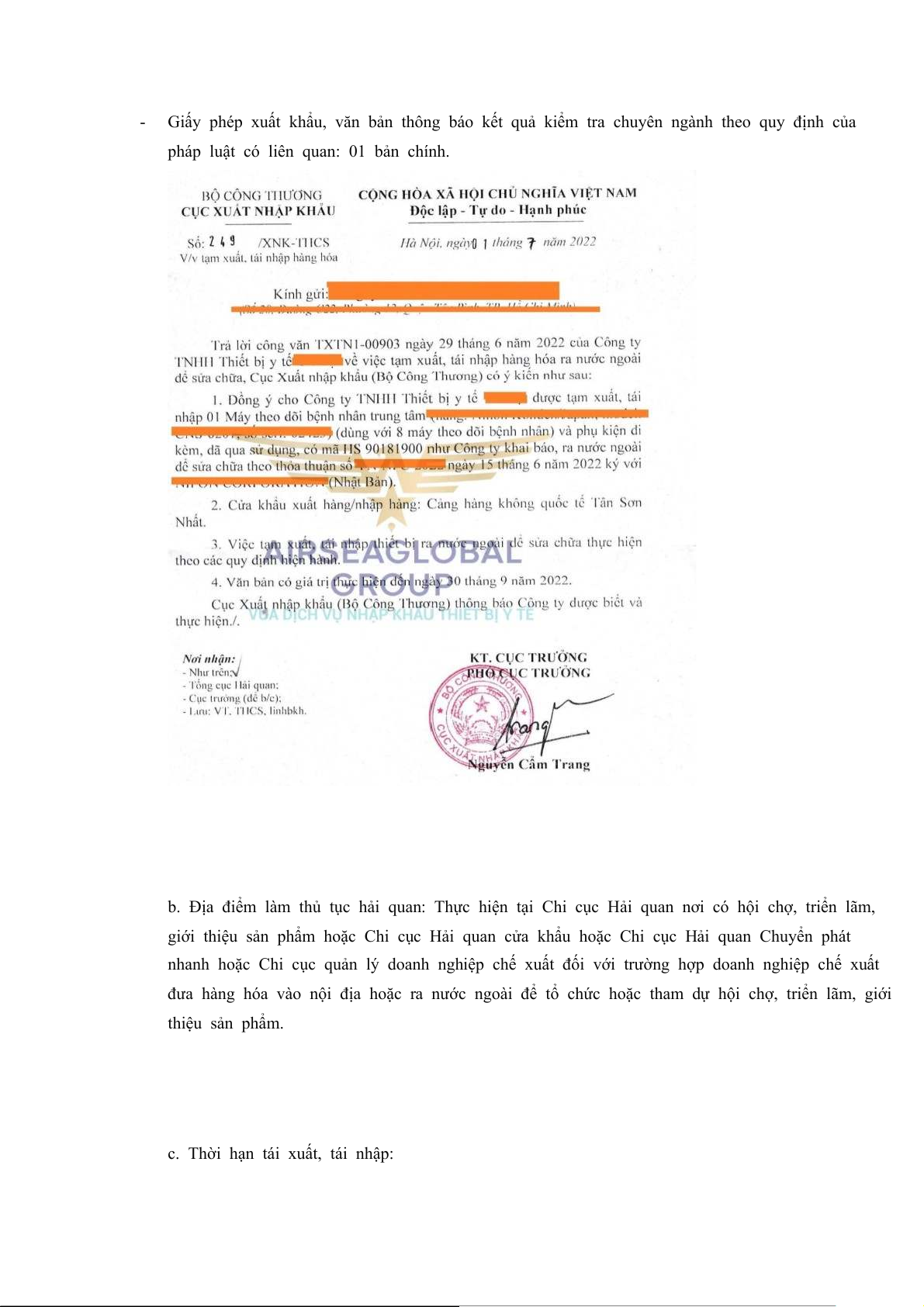 bố, Bộ Công Thương chỉ xem xét cấp Giấy phép tạm nhập, tái xuất cho các doanh nghiệp được Ủy