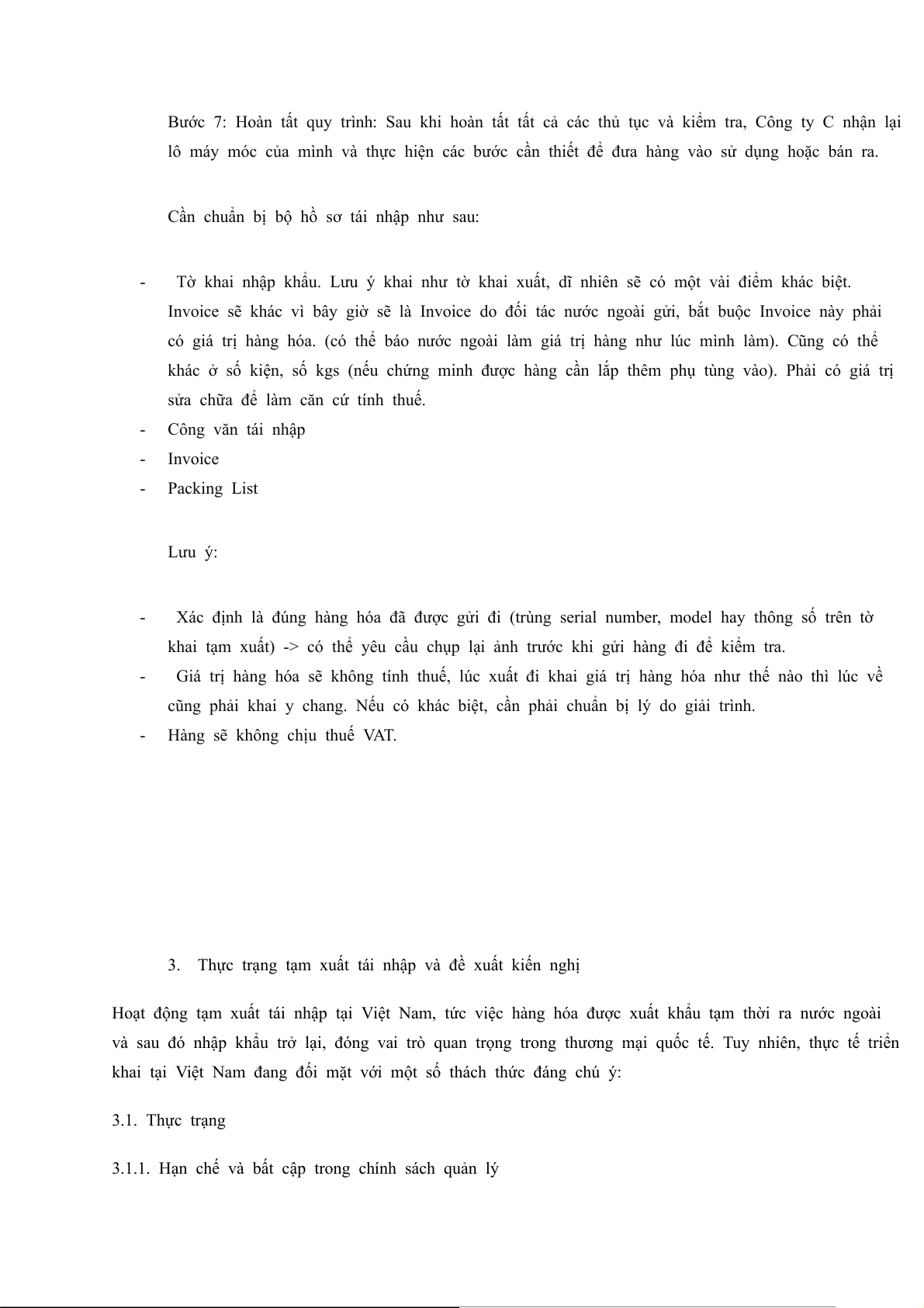 3. Thực trạng tạm xuất tái nhập và đề xuất kiến nghị
