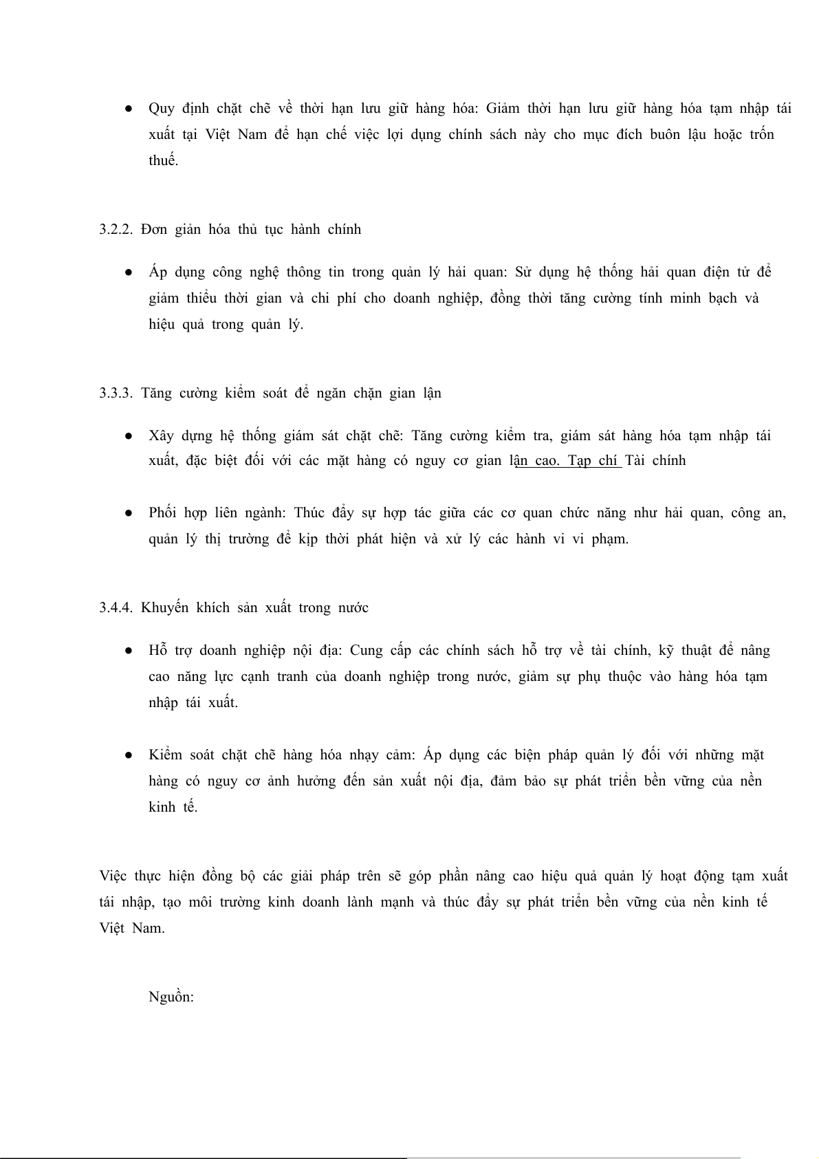 ● Xây dựng hệ thống giám sát chặt chẽ: Tăng cường kiểm tra, giám sát hàng hóa tạm nhập tái