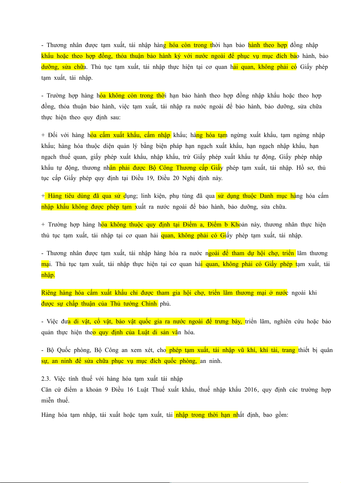 2.3. Việc tính thuế với hàng hóa tạm xuất tái nhập