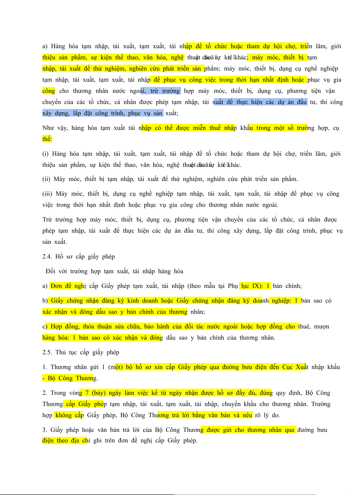 để tham gia các hoạt động như hội chợ, triển lãm, giới thiệu sản phẩm và sau đó được tái nhập lại vào Việt Nam.