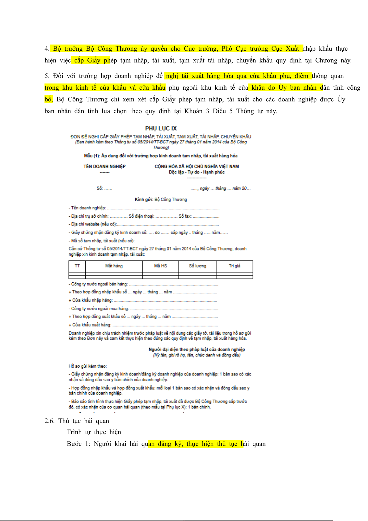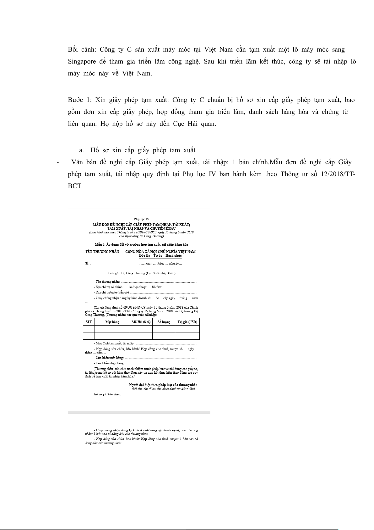 khẩu tự động, thương nhân phải được Bộ Công Thương cấp Giấy phép tạm xuất, tái nhập. Hồ sơ, thủ