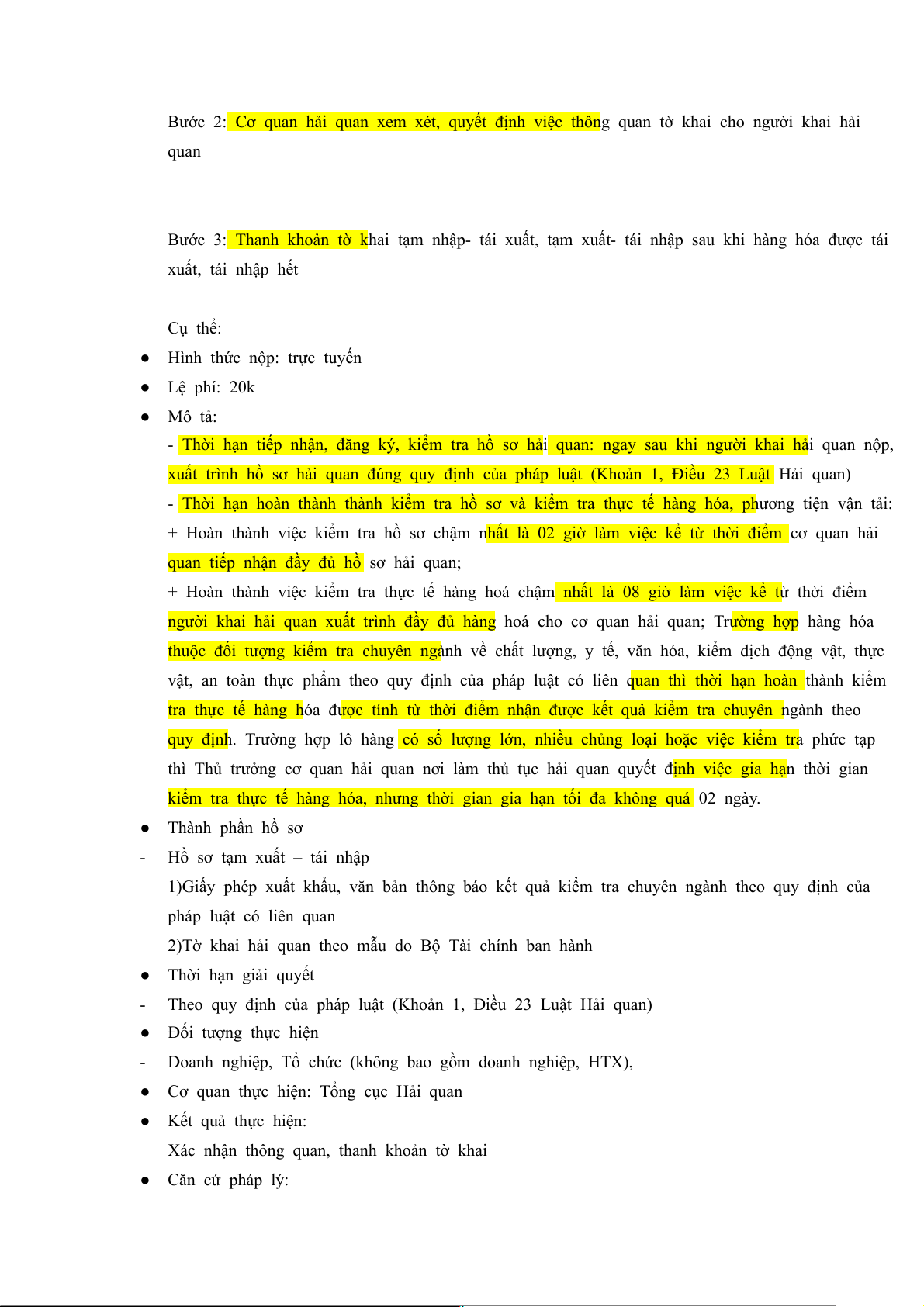 + Hoàn thành việc kiểm tra thực tế hàng hoá chậm nhất là 08 giờ làm việc kể từ thời điểm
