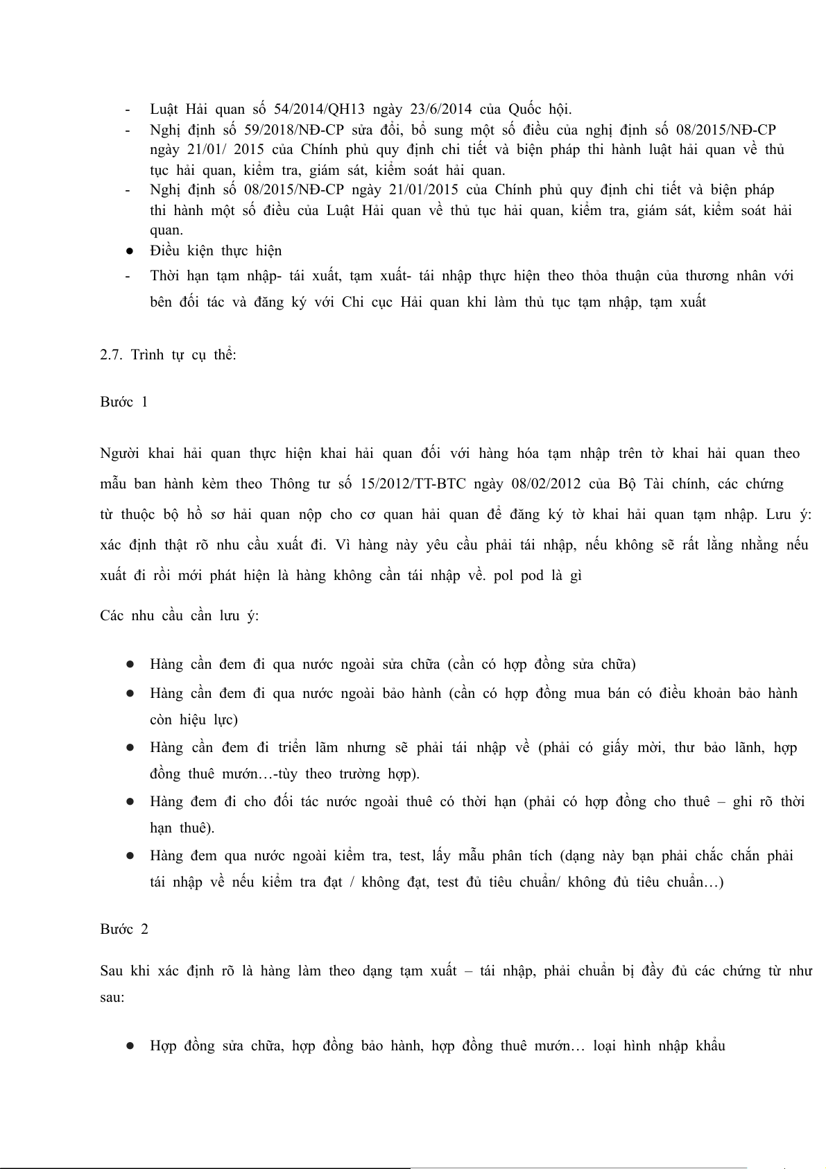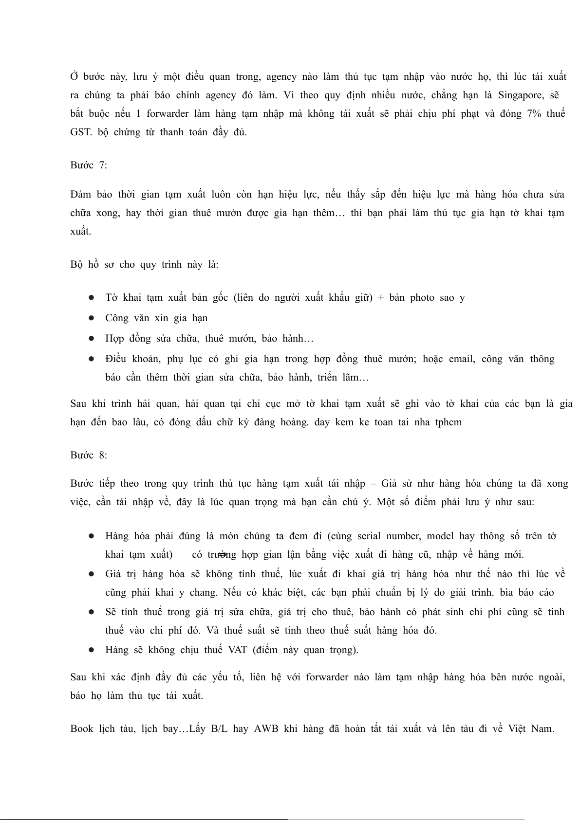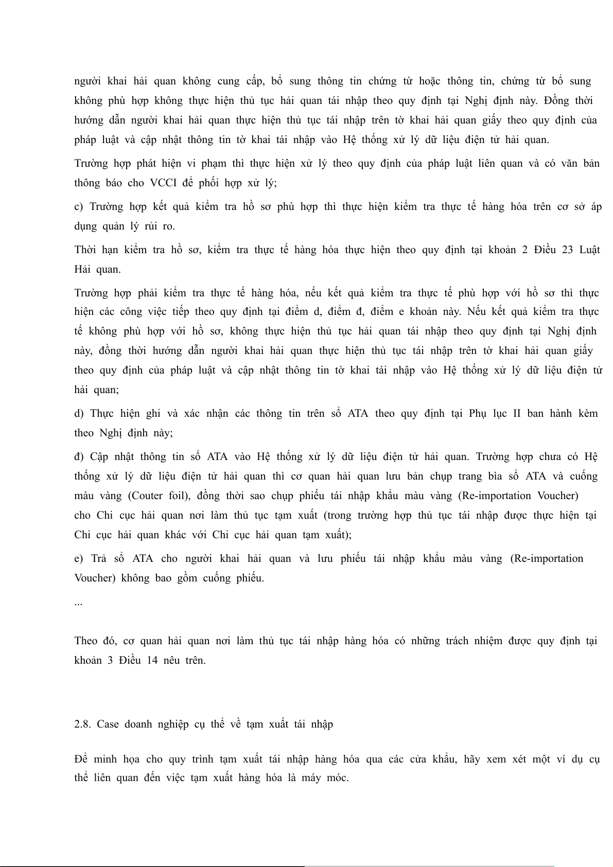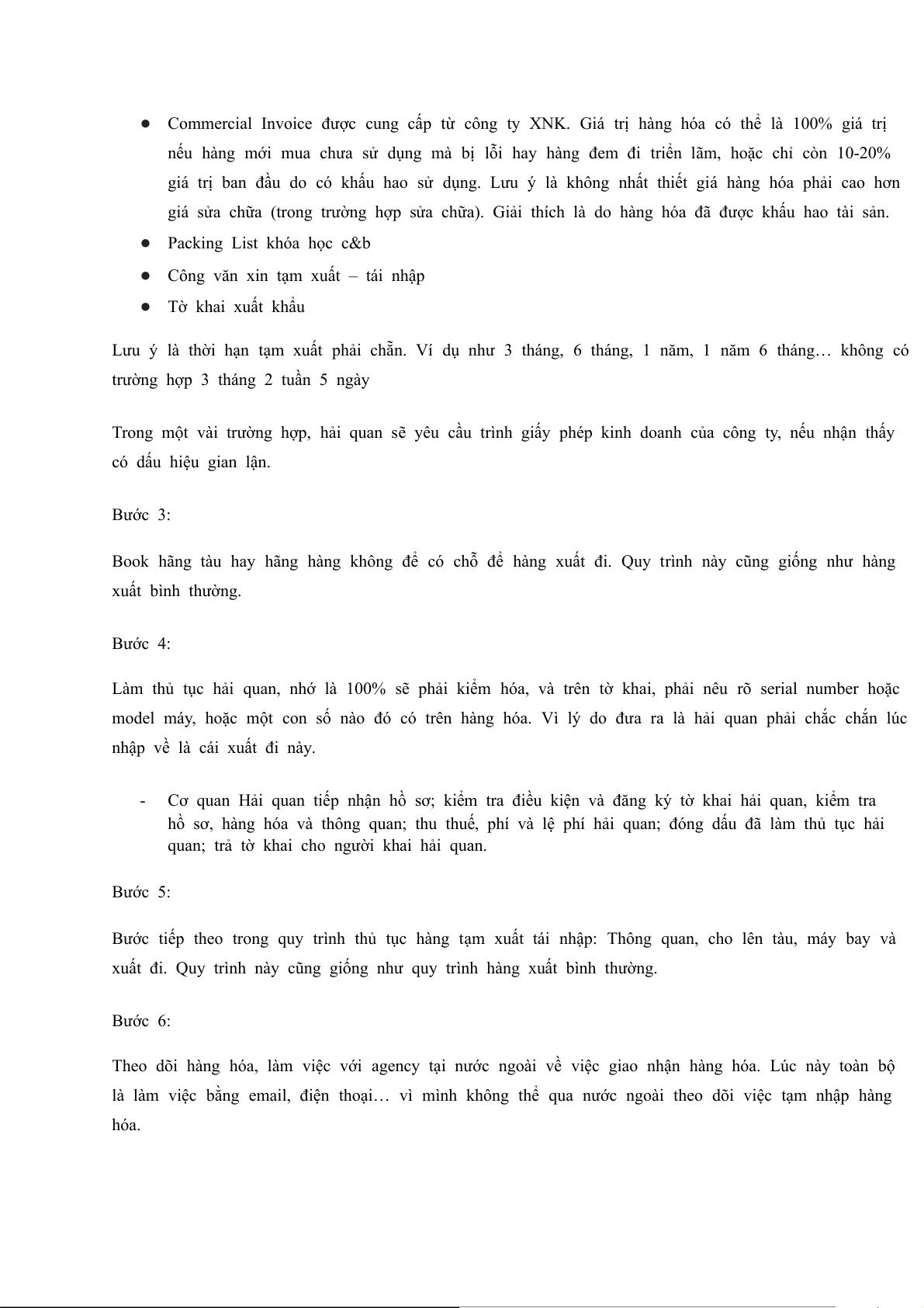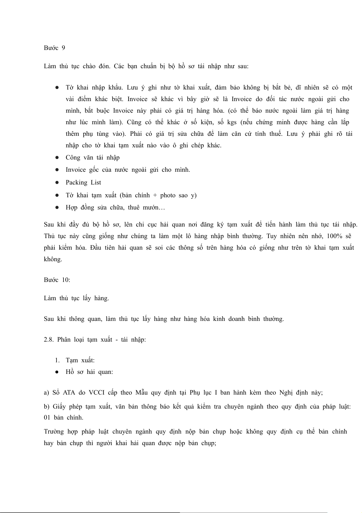 hiện các hoạt động như bảo hành, bảo dưỡng, sửa chữa và sau đó tái nhập lại vào Việt Nam. -