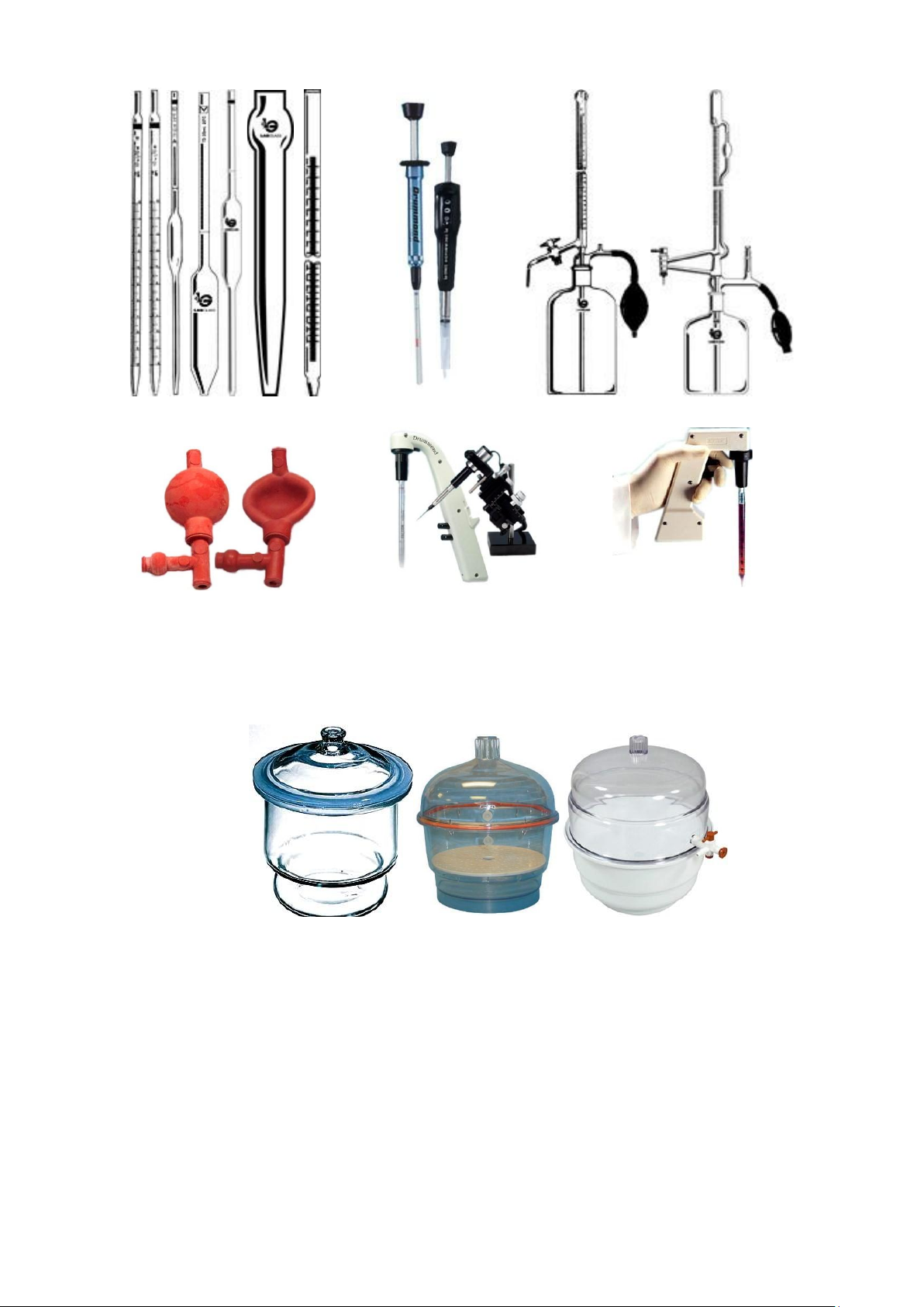 (a. thông thường, b. pipet microlit, c. pipet lấy NH3, d. bóp cao su, e. pipet hiện đại)