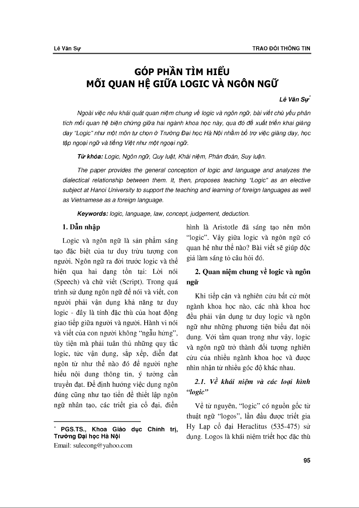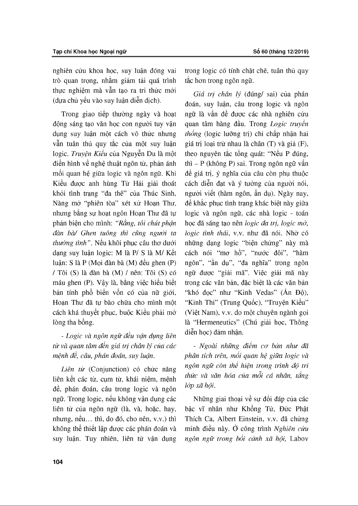 Tạp chí Khoa học Ngoại ngữ - Góp phần tìm hiểu mối quan hệ giữa logic và ngôn ngữ