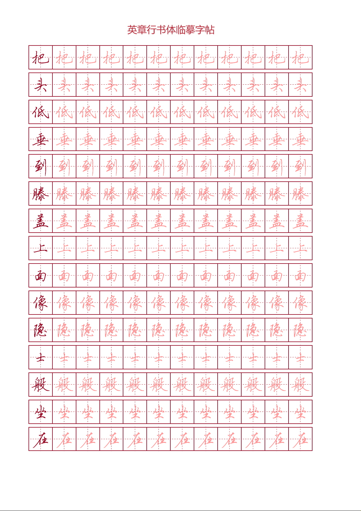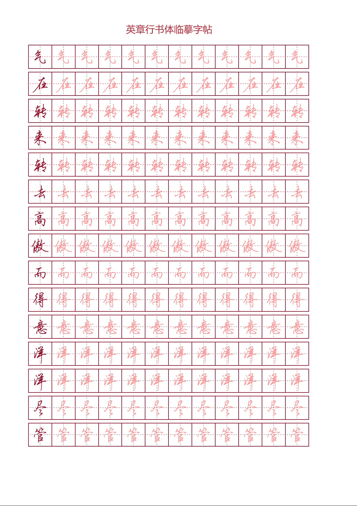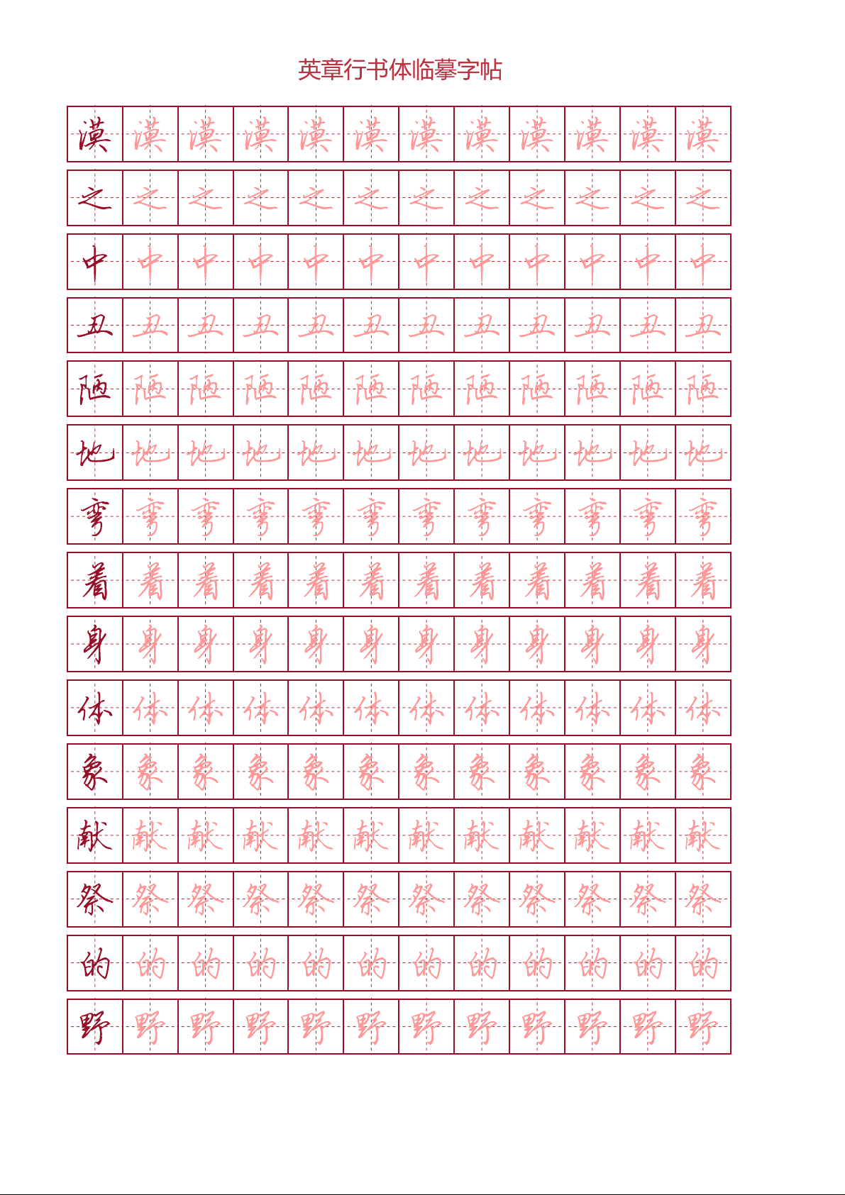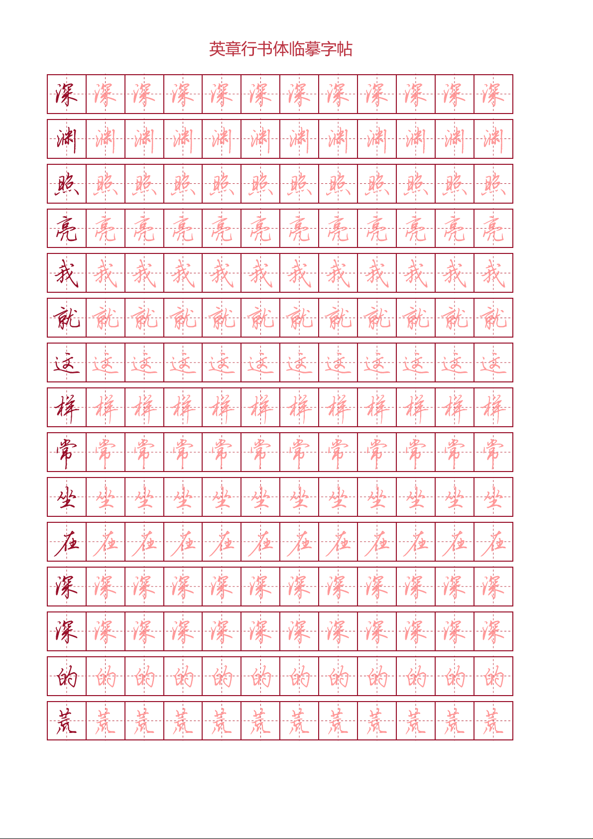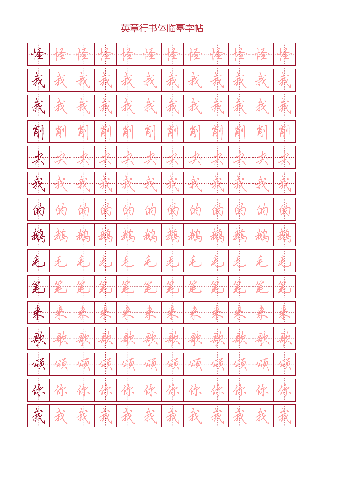 Tập viết chữ hành thư Điền Anh Chương - Thơ Nietzsche (ô chữ điền) phù hợp với các bạn đang luyện tập viết chữ Trung Quốc thể hành, nét viết đẹp.