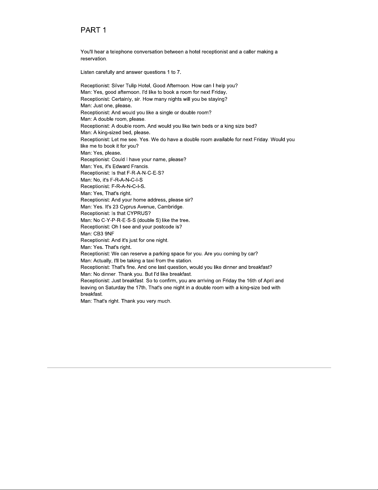 Tapescript 4: Reservation Dialogue at Silver Tulip Hotel