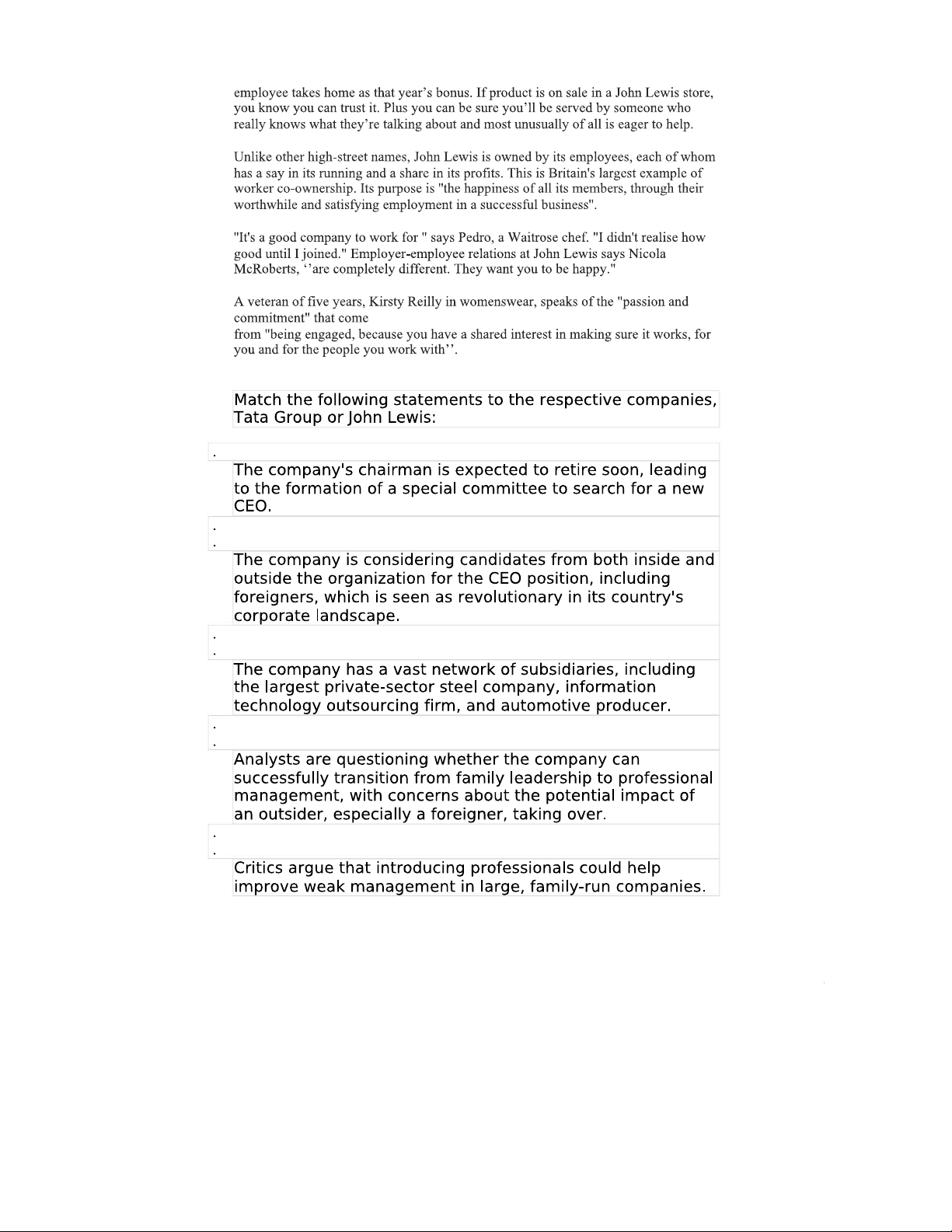 Tata Group & John Lewis: Leadership Changes and Employee Co-Ownership Analysis