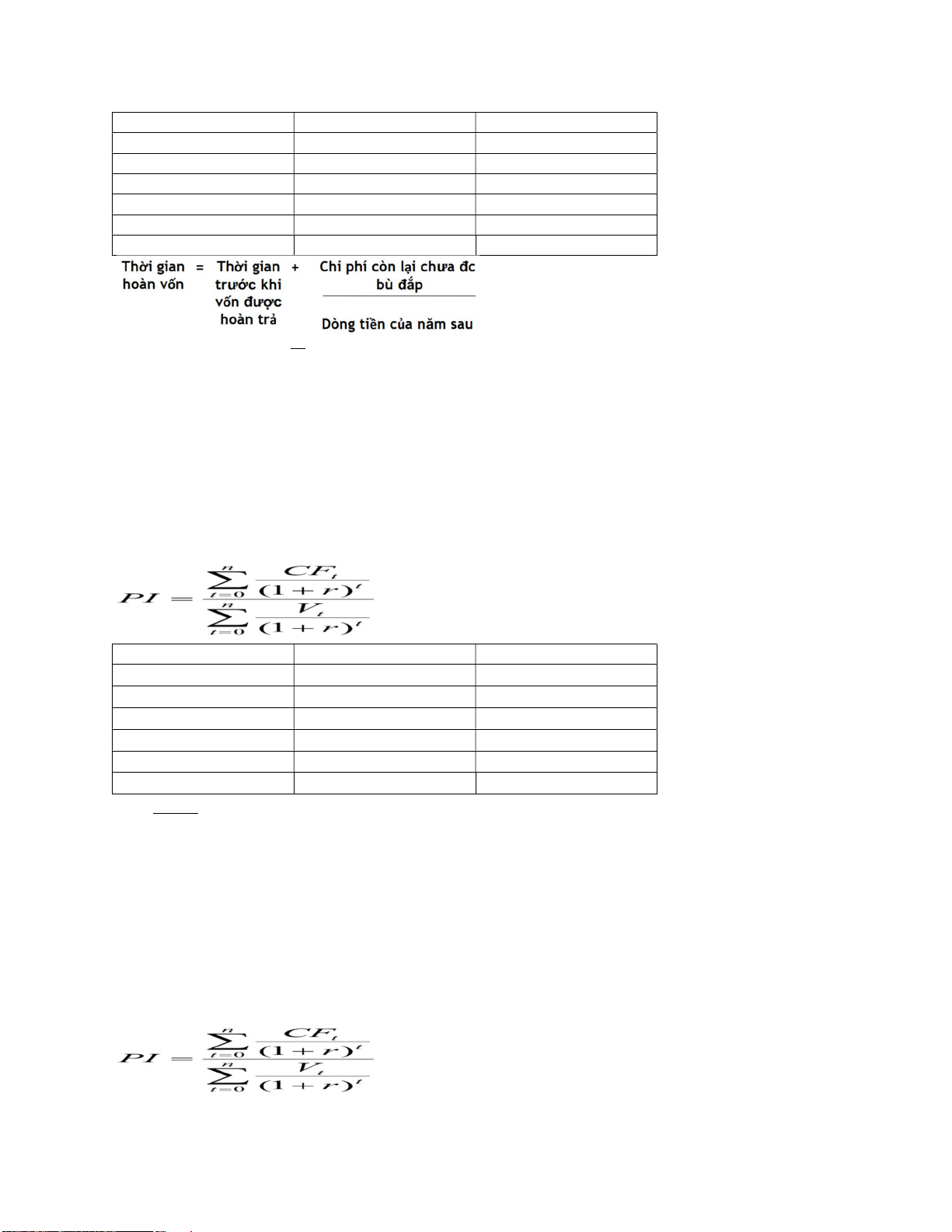 và 70 triệu. Lãi suất chiết khẩu là 9%/năm 0,98 1 1,04 1,15 Dòng tiền hằng năm Dòng tiền chiết khấu 1 60 55.05 2 40 33.67 3 65 50.19 4 40 28.34 5 80 51.99 6 70 41.74 Tổng 260.98 PI = . = 1.04