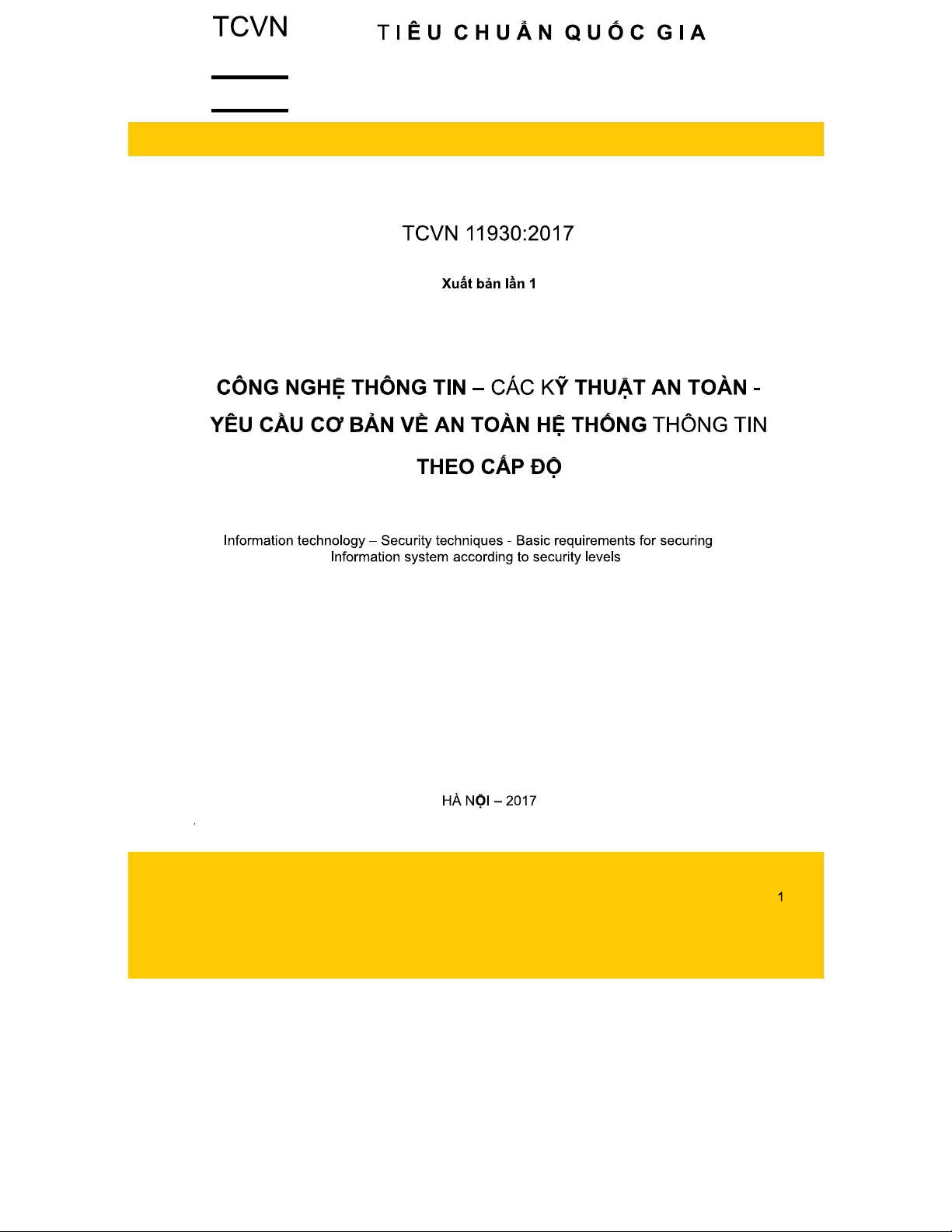 TCVN 11930:2017 Yêu Cầu Cơ Bản Về An Toàn Hệ Thống Thông Tin