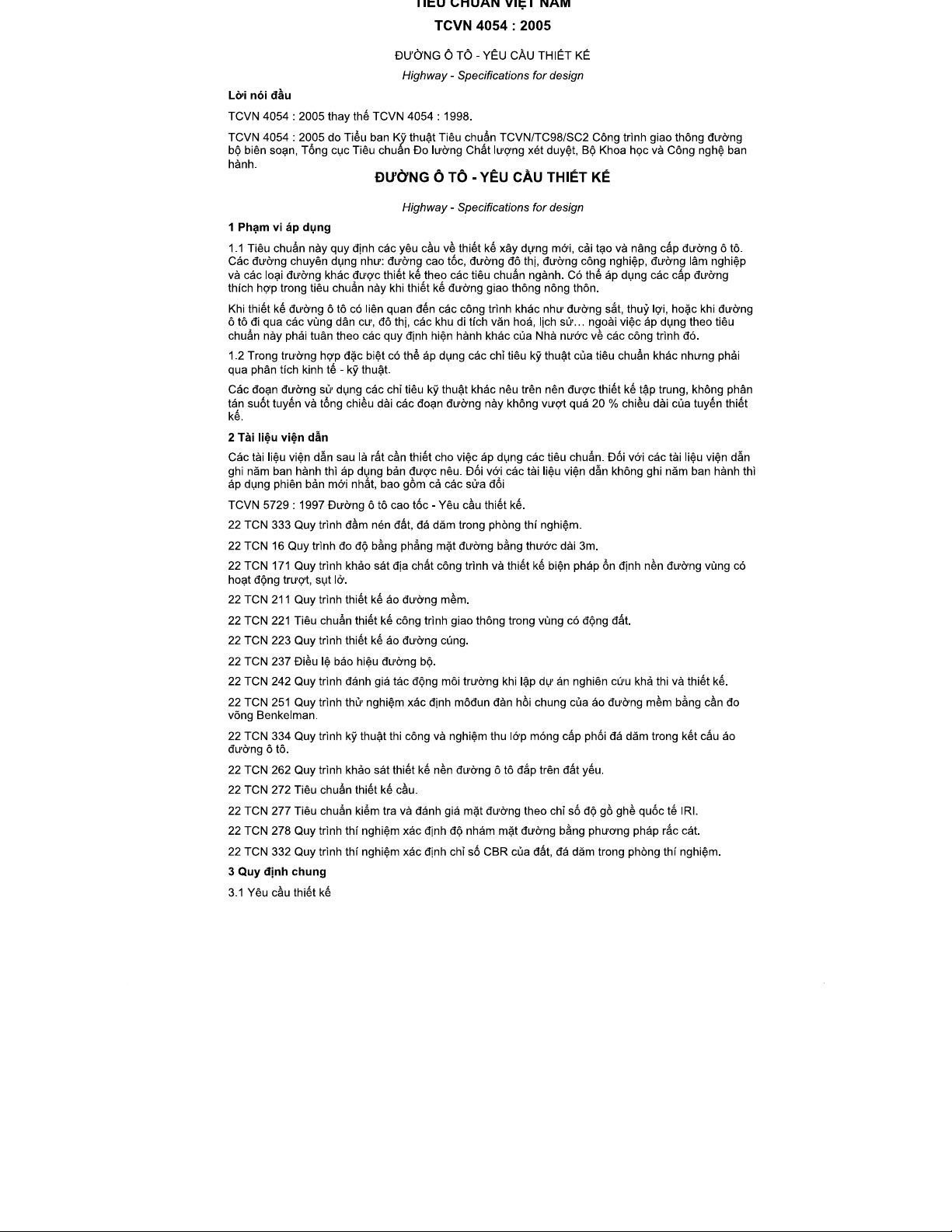 TCVN 4054-2005: Yêu cầu Thiết kế Đường Ô Tô - Tiêu Chuẩn Việt Nam